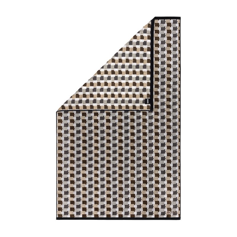 The Lucio Bath Collection elevates everyday rituals with its sophisticated geometric design and exceptional tactile quality. The jacquard pattern creates a dynamic moiré effect that adds visual depth and movement to your bathroom aesthetic. Constructed from 100% organic cotton in a substantial 450 gsm terry, each piece combines plush density with remarkable absorbency, delivering enveloping softness that feels indulgent without excess weight. The jacquard velour weave, accented with an embroidered BOSS logo and contrasting solid border, reflects meticulous craftsmanship. Natural, breathable fibers ensure comfort and durability, making this collection an ideal choice for those who appreciate both refined design and superior performance in their daily wellness routine.