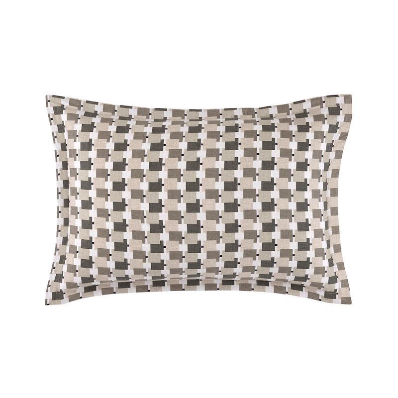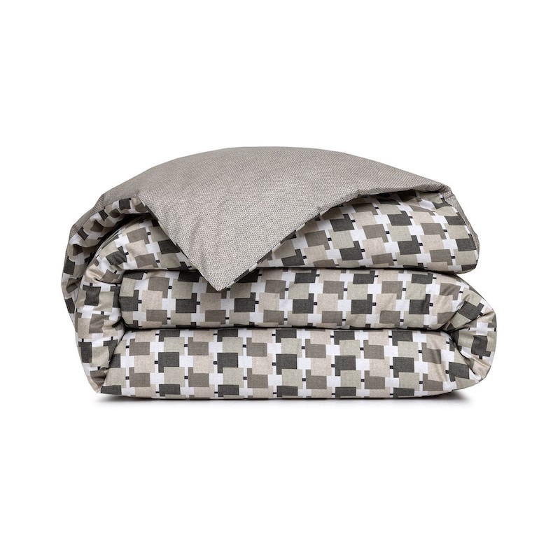 The Lucio Bed Collection by Boss Home brings contemporary sophistication to your bedroom with its striking geometric composition. Inspired by modernist design principles, offset squares in soft, nuanced tones create visual interest while maintaining a refined aesthetic. Woven from 300 thread count cotton sateen, the collection showcases a luminous finish and supple hand that invites immediate comfort. The reversible design provides styling flexibility, while 100% natural cotton ensures breathability and lasting softness. Thoughtfully engineered details include shams featuring the offset tile pattern with piped edges and zipper closure, a zippered duvet cover for effortless changes, a flat sheet with understated elegance, and a fitted sheet designed for mattresses up to 18 inches thick. Experience the intersection of architectural beauty and tactile luxury.