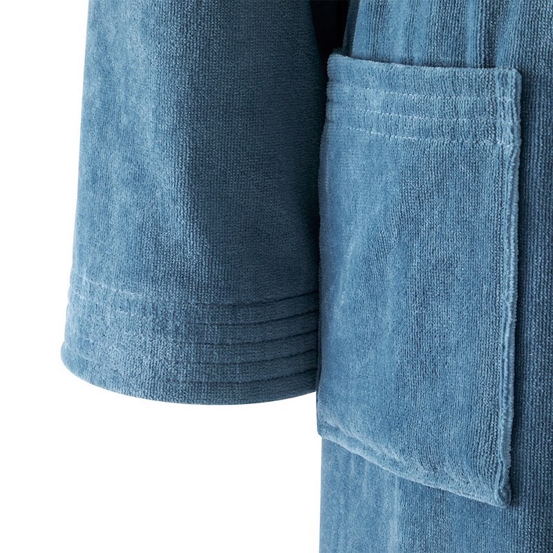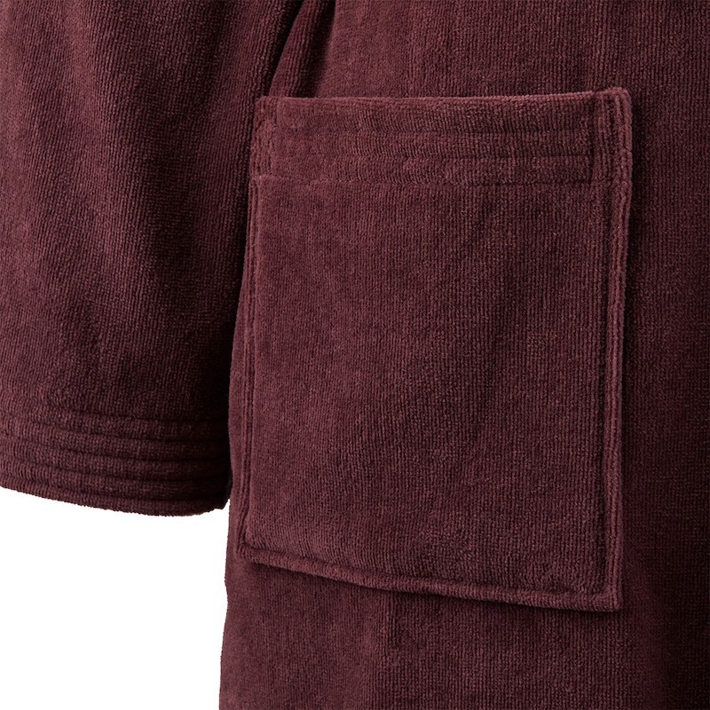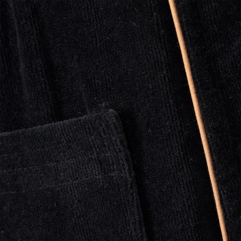 This luxurious men's bathrobe showcases Hugo Boss craftsmanship with its distinctive logo embroidery adorning the back. Crafted from premium cotton velvet with a plush 430 gsm weight, the interior features soft terry for enhanced comfort. The sophisticated shawl collar and contrasting camel piping along the front create refined detailing, while functional side patch pockets and an adjustable tie belt offer practicality. The velvet finish delivers a sumptuous feel against the skin, making this 100% cotton piece an elevated choice for elevated loungewear.