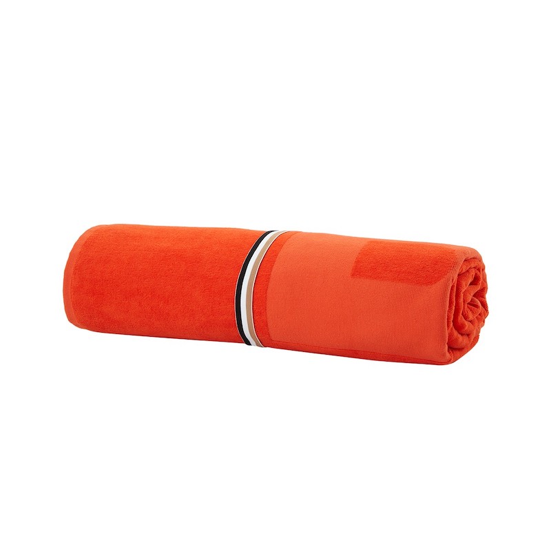 Crafted from premium Turkish cotton at 420 gsm, this minimalist Zuma beach towel showcases a sophisticated velvet finish with an embossed tonal BOSS logo. The design balances understated elegance with functional details—a convenient hanging loop accented with the brand's signature tricolor stripes elevates even practical elements. Pure cotton construction ensures durability and absorbency for everyday beach use, while the supple velvet texture adds a touch of luxury to your poolside collection.
