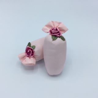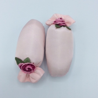 Made in the U.S. with Irene Hirose's signature scent, the shoe stuffers are made from a silk fabric and come in a pair. These are a pink silk with a pink rosette.