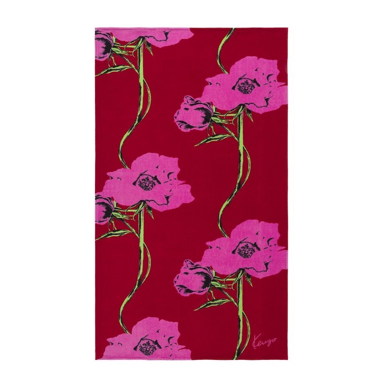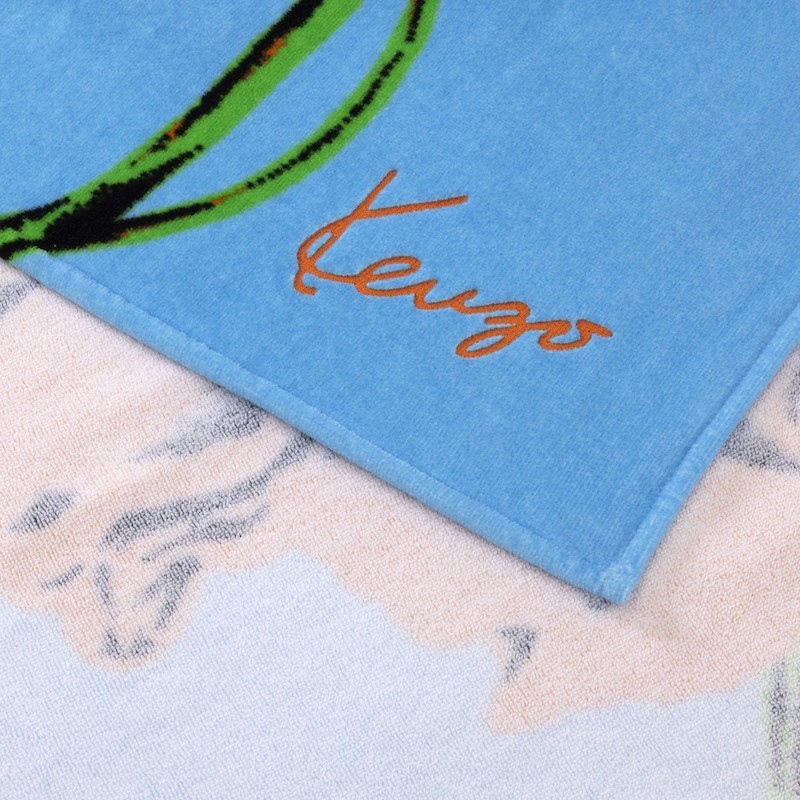 This K Pop beach towel in Turquoise from Kenzo showcases an audacious all-over rose motif that exemplifies Kenzo's signature design philosophy—bold, unapologetic, and visually commanding. Constructed from 100% cotton velour at 450 gsm, the plush fibers deliver exceptional softness alongside reliable absorbency and structural integrity. The precision printing technique saturates the design with rich color depth and dimensional presence, while the velour construction creates a luxuriously tactile surface. Manufactured in Turkey by workshops specializing in velour printing excellence, this towel transforms everyday beach moments into a statement of contemporary style and refined craftsmanship.