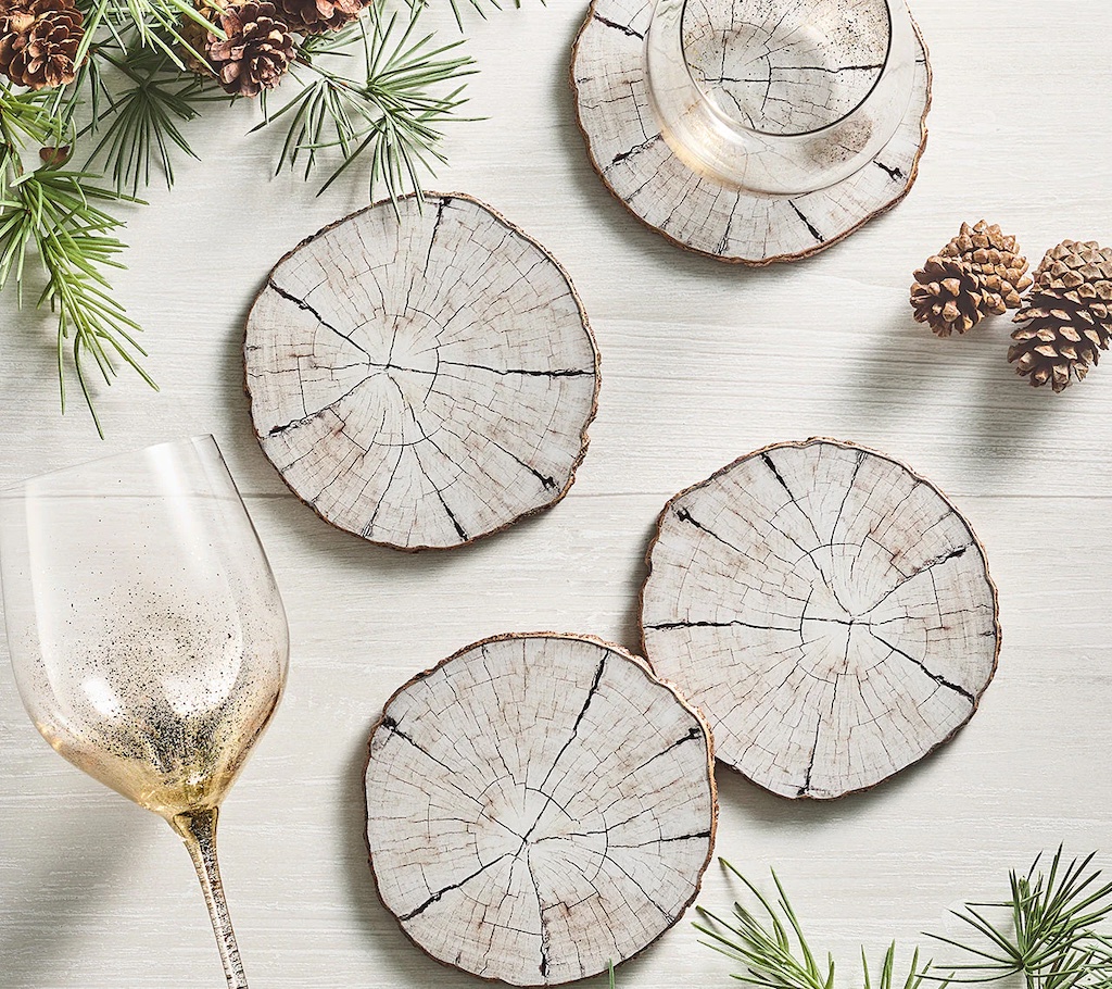 Kim Seybert's Birch Coasters are designed to look like a wood slice and mimic the look of a real wooden placemat. Perfect for a nature-inspired luncheon, they add the right amount of country charm. These decorative wood-like coasters are acrylic with a cork backing and will add a beautiful touch of nature to any event. 70% MDF, 20% Acrylic, 10% Cork. 4.62" Length x 4.75" Width x .25" Height.