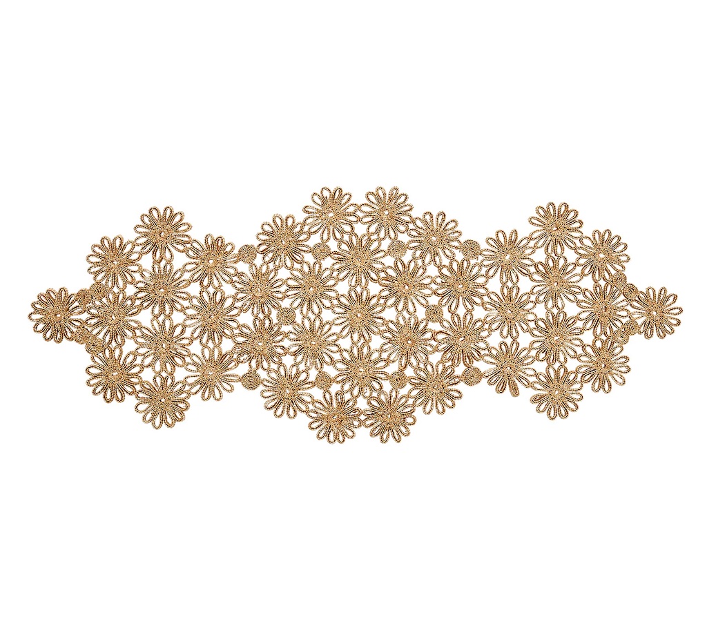 Kim Seybert's Flores Runner in Natural is a work of art created from handwoven wheatgrass. Meticulously arranged, hand-braided strips form intricate blooms, showcasing exceptional craftsmanship. The complex weaving lends this table runner a substantial and luxurious presence, adding a touch of exquisite natural beauty to any setting. Summertime entertaining will look effortlessly chic with the Flores runner. 36.5" Length x 14.5" Width x 0.5" Height. 100% Wheat Straw.