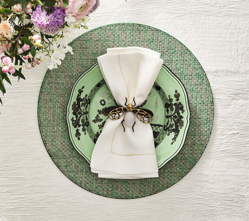 Kim Seybert's Fly Away Napkin Rings are a true classic for spring/summer! Fashion-forward and playful, our embellished napkin rings are formed in brass emphasizing its Quartz abdomen. 80% Brass, 20% Quartz Stone Setting.