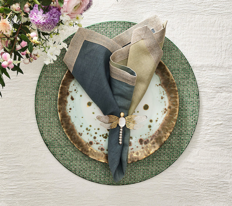 transport you to the garden. The fresh, basket-weave inspired Jardin Placemat plays with texture and shades of green.