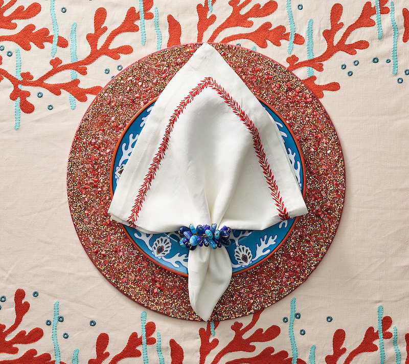 Kim Seybert's poppy Napkin rings are striated glass beads in striking patriotic colors are hand strung together. These are so fun and just say Go USA! A true winner!