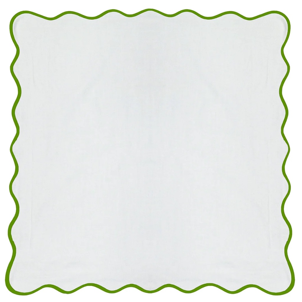 Laura Park Designs has fantastic bedding that are the perfect blank canvas. These scalloped duvet covers and shams are an elegant addition to any bed, offering a layer of stylish comfort that instantly enhances the aesthetic of your bedroom. The soft white fabric features a colorful piped edge, offering a cohesive, classic look. These scalloped euro shams are an elegant addition to any bed, perfect for layering with our vibrant patterns. The soft white fabric features a colorful piped edge, offering a cohesive, classic look. Colored scalloped trim. 2.5" Flange. 100% Cotton.