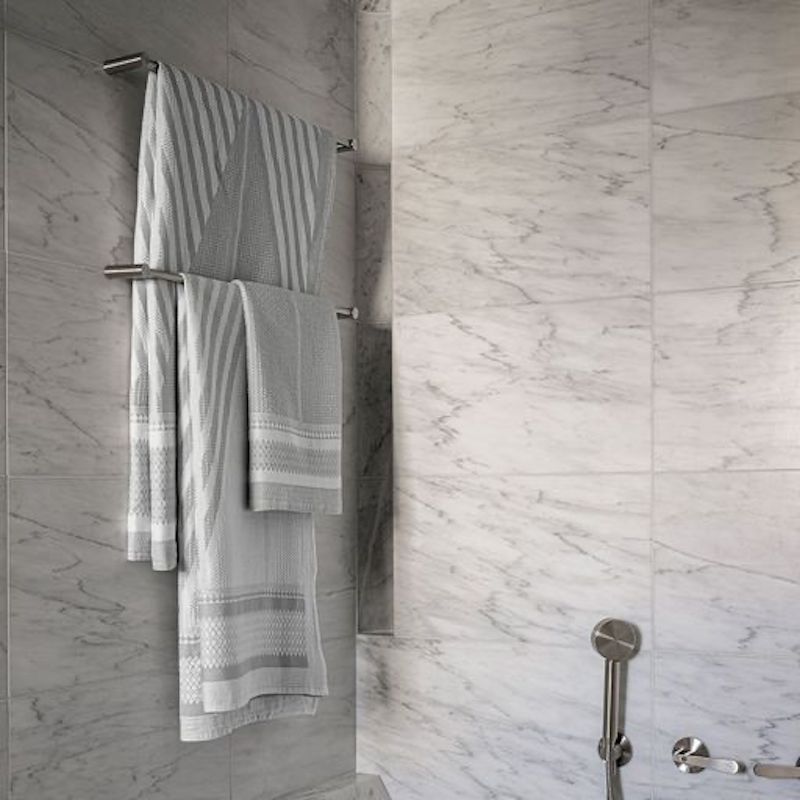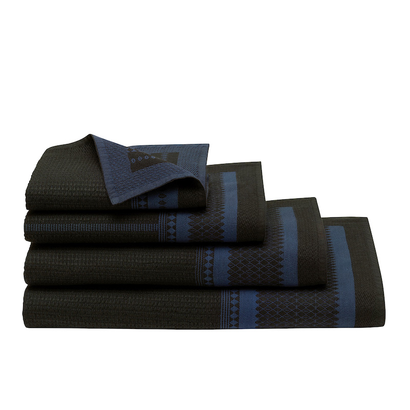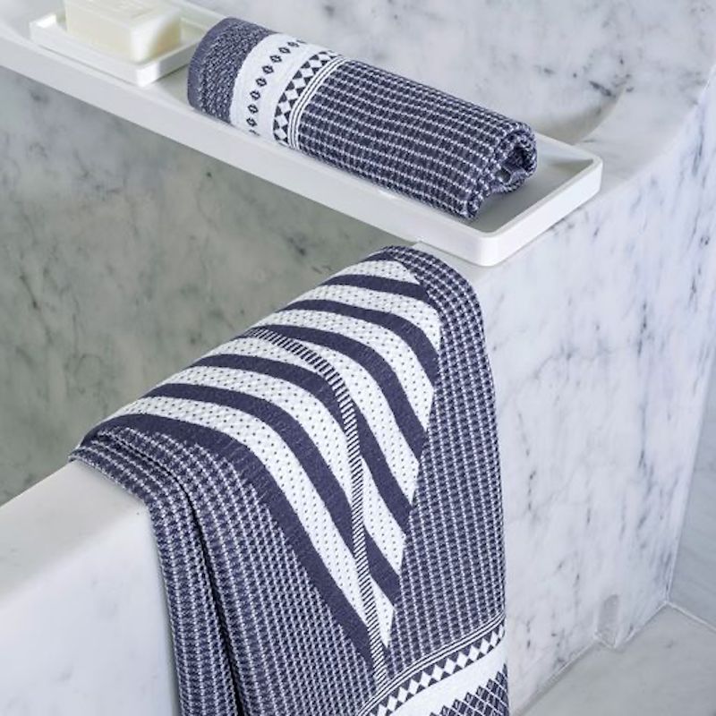 Le Jacquard Francais' Bath Club was inspired by the architectural structures of his own buildings. Jean-Michel Wilmotte forcefully transcribes the lines of the framework onto the fabric. The collection's weave resembles a sketchbook. A collection with a singular identity and clean, contemporary lines that invites you to relax. 100% cotton honeycomb. Made in France.