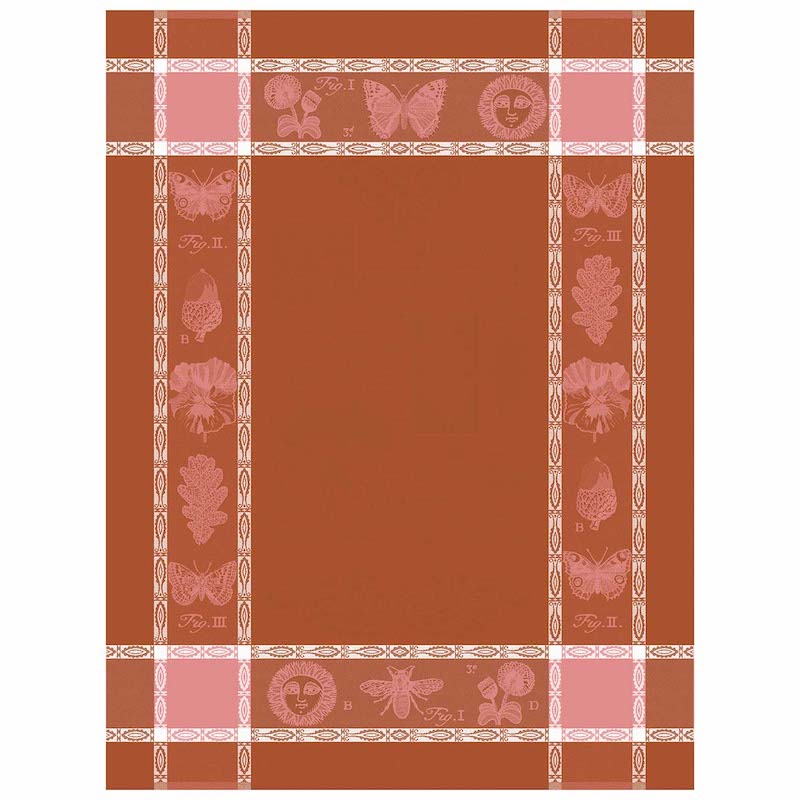 border filled with acorns, winged creatures and flora. 100% cotton. They are available in three colors.