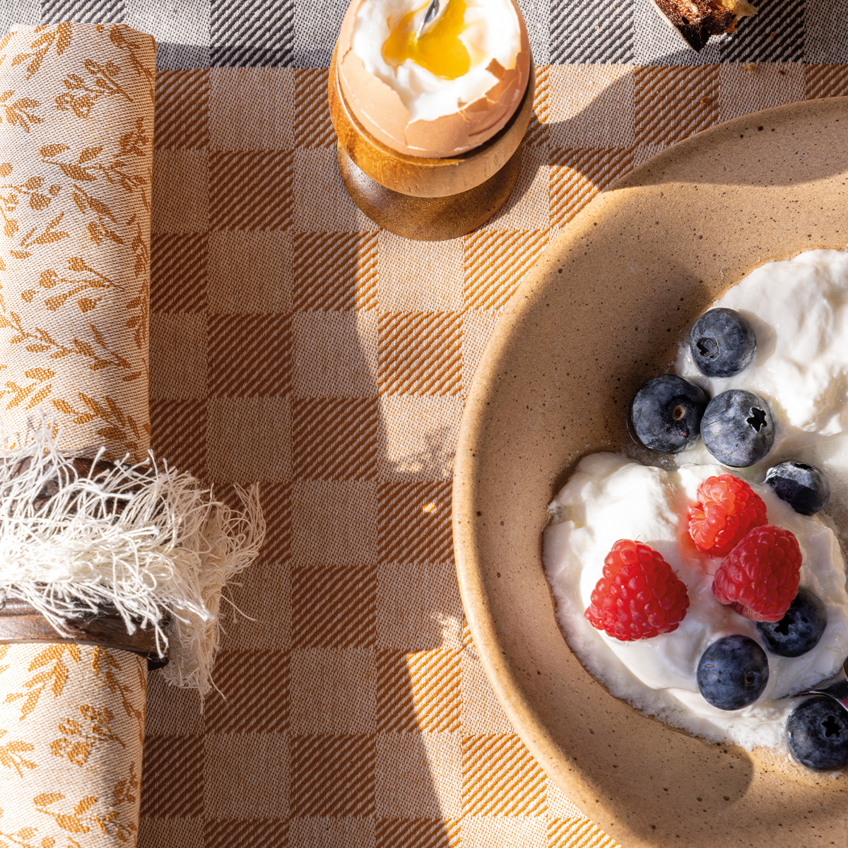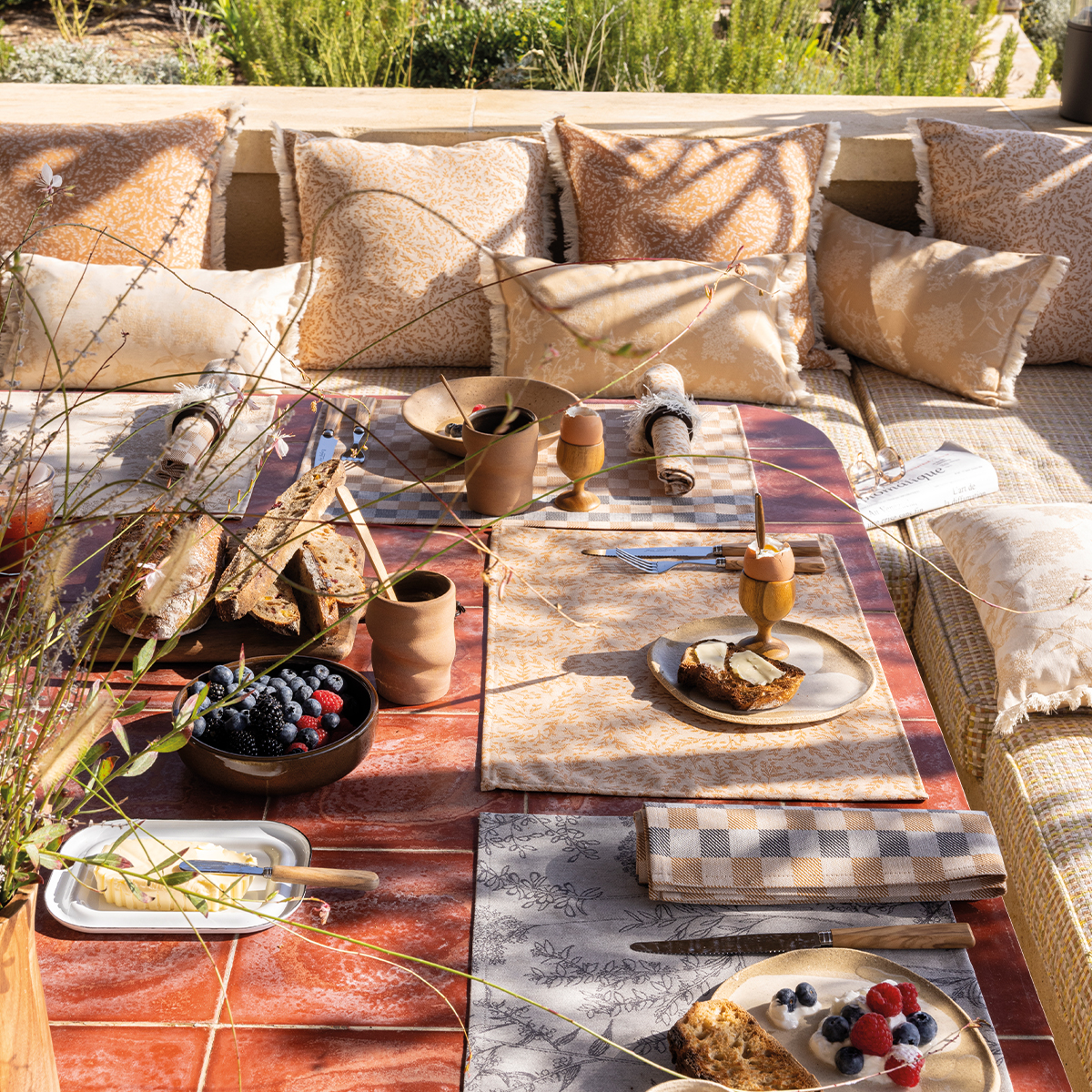 *Coated products are made of 100% cotton and covered with two layers of acrylic. This protective, non-sticky film makes them stain and water repellent. Coated table linens can be cleaned with a sponge and should only be machine washed occasionally.