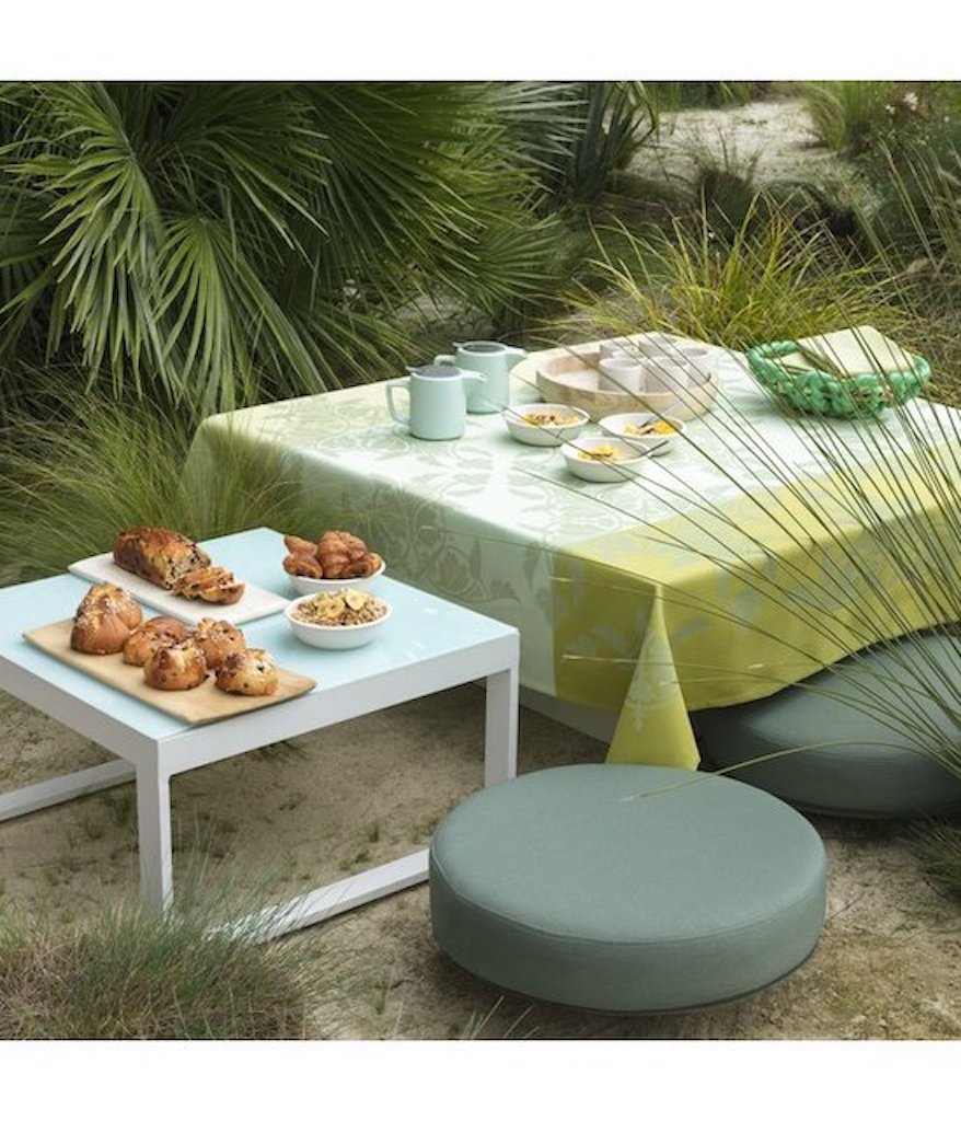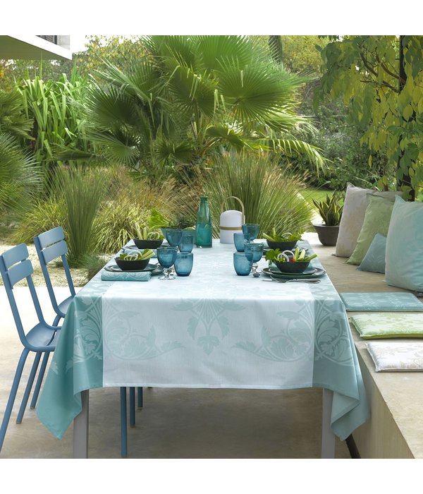 Le Jacquard Francais lets you bring the charms of Sicily home with the collection Syracuse. A true tribute to the Italian way of life. This collection is perfect for lingering over a meal. The design is a subtle and streamlined Baroque-inspired pattern. A 100% cotton damask with a matte acrylic coating for easy wipe-off.
