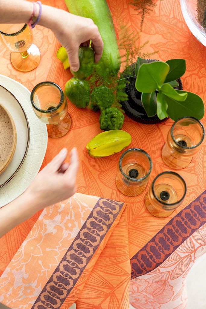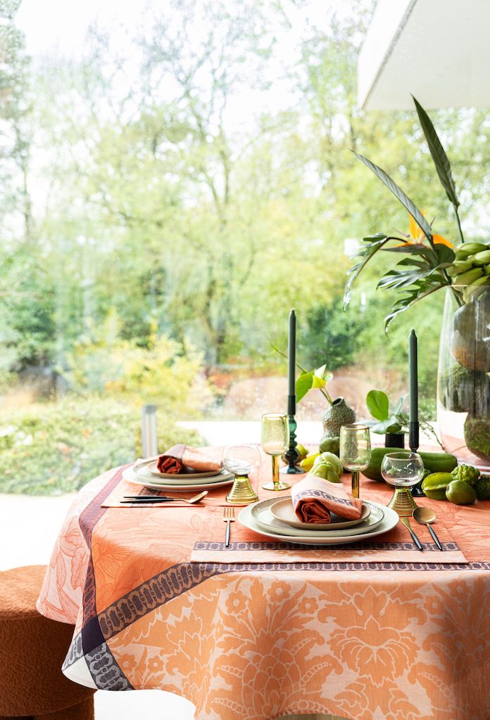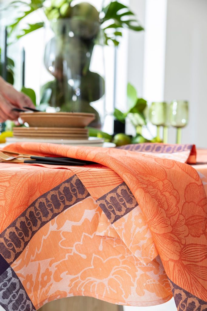 Le Jacquard Francais Escapade Tropicale is vibrant and ornate. The floral patterns and vibrant colors of this collection will captivate you for a joyful and refreshing getaway. This collection is an invitation to travel to distant lands with lush vegetation. 100% linen. Easy iron. France.