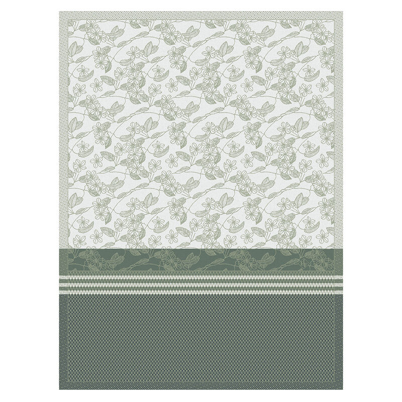 Le Jacquard Francais' Essentiel Gravure tea towel has a sweet floral flair yet with its border it can be on the contemporary side too. The tea towel has a woven label to hang it easily in your kitchen. 100% long staple combed cotton. Available in three colors. France.