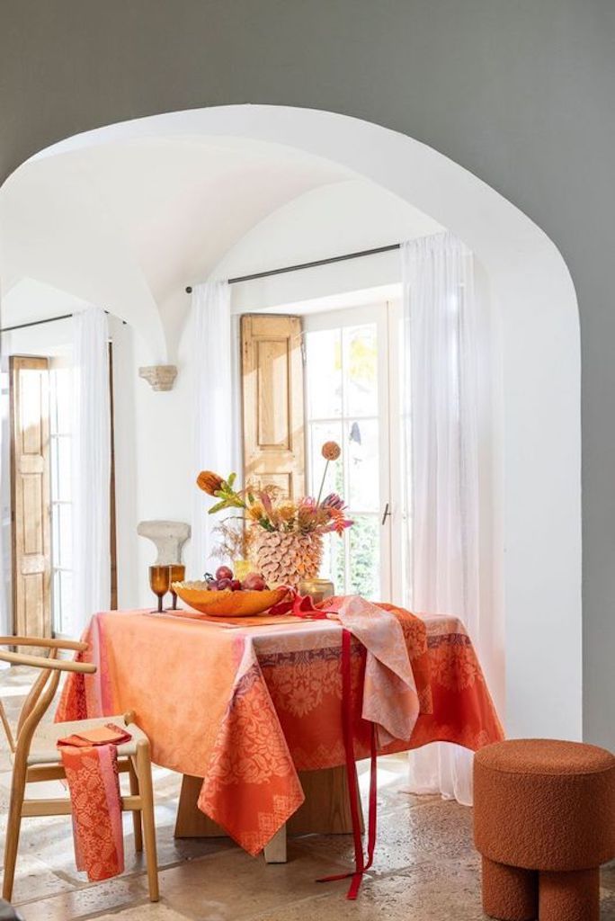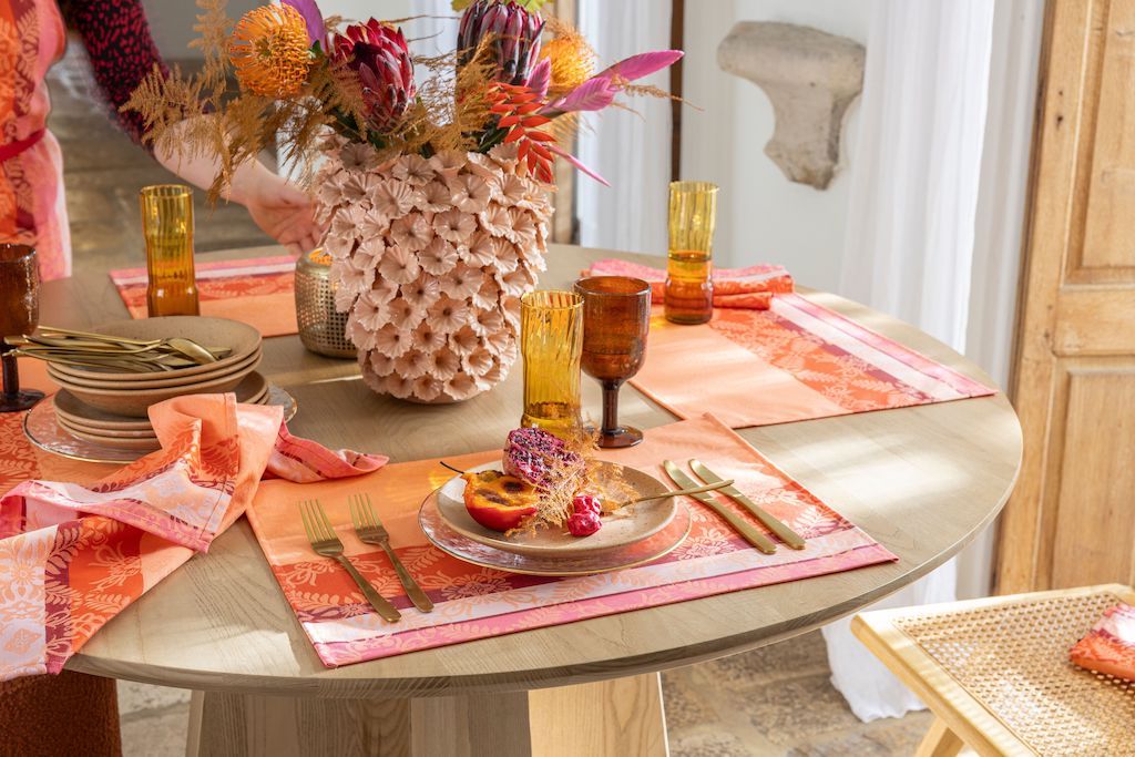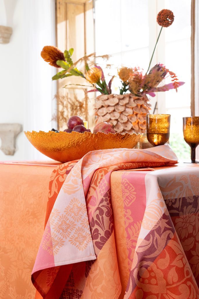 Le Jacquard Francais Mumbai is spectacular. Immerse your table decoration in exotic elegance with the Mumbai tablecloth, on which rich and captivating patterns celebrate Indian traditions. Make every meal a sensory journey to the heart of reinvented India. Colored warp and weft. 100% cotton. Combed yarns, long fibers. France.
