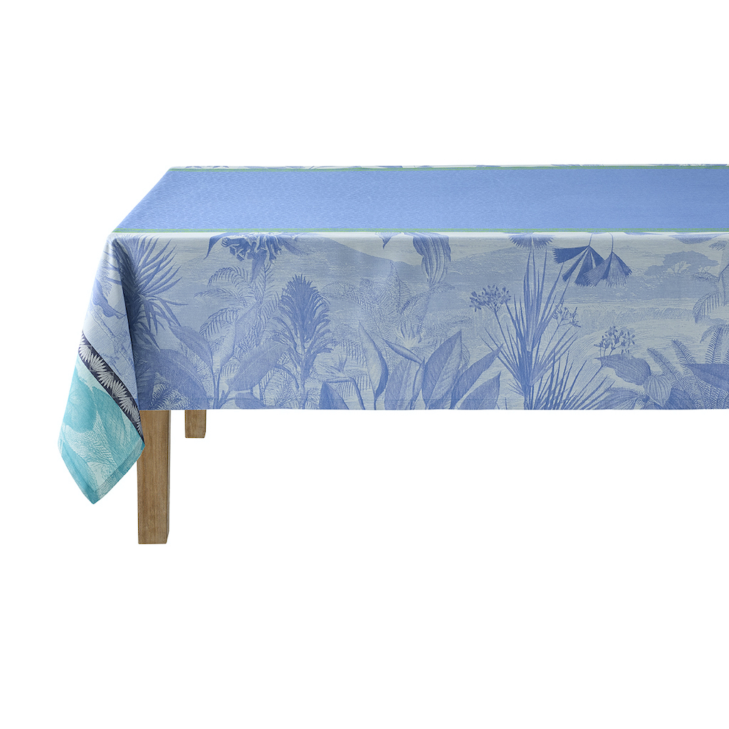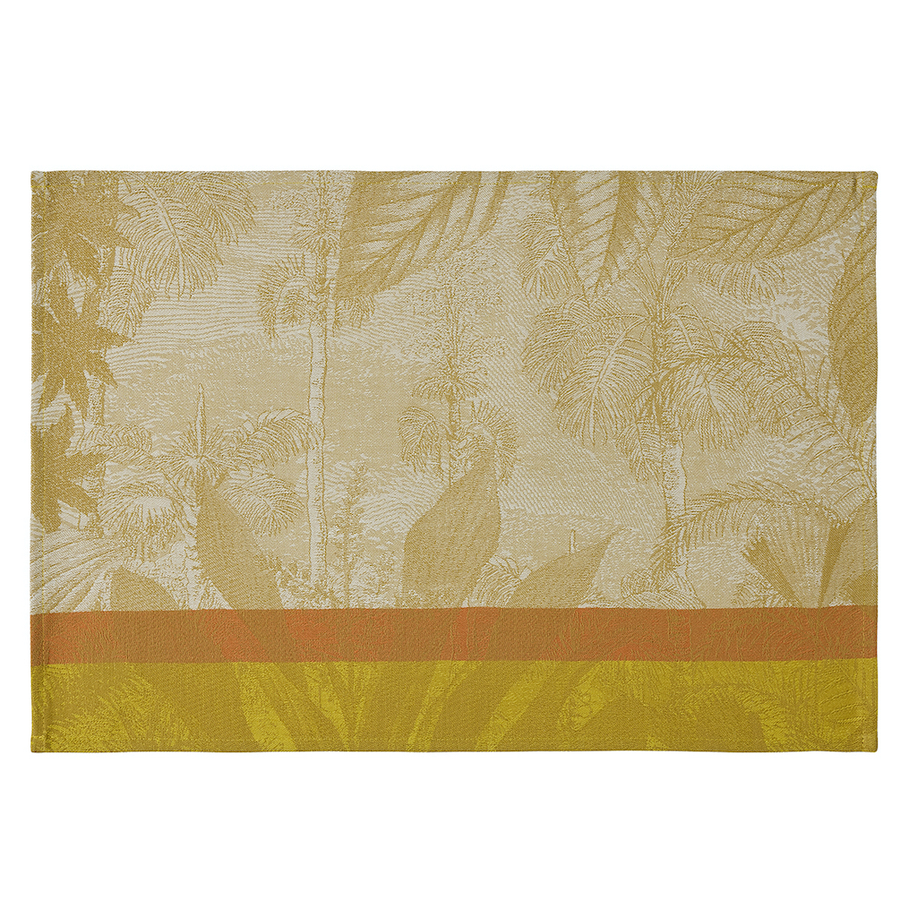 Le Jacquard Francais' Sinharaja table linen collection is wild and adventurous. The design has a spectacular Sri Lank flair. It is a true splendor that blends tea plantation flora, wild beaches, and lush jungles designs all at once. Available in three colors. 100% cotton. Made in France.