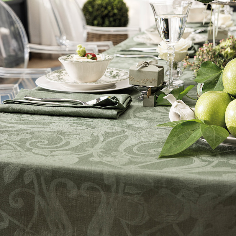 Le Jacquard Francais Tivoli Table Linens in Green has an