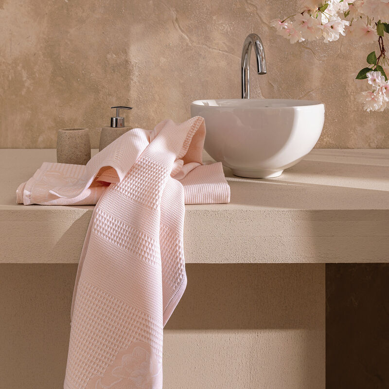 hemstitching. These soft waffle towels come in delicate, powdery