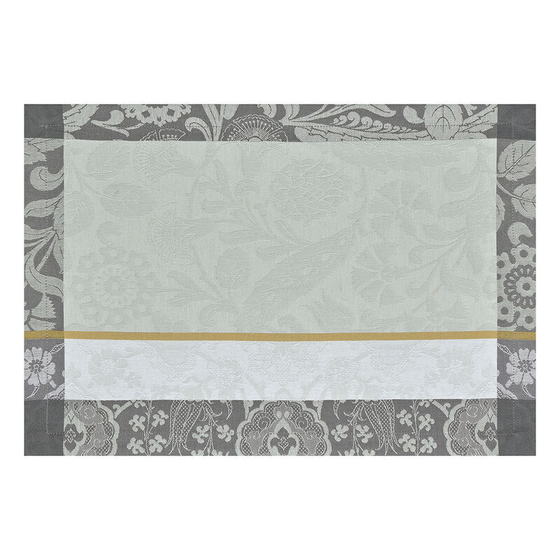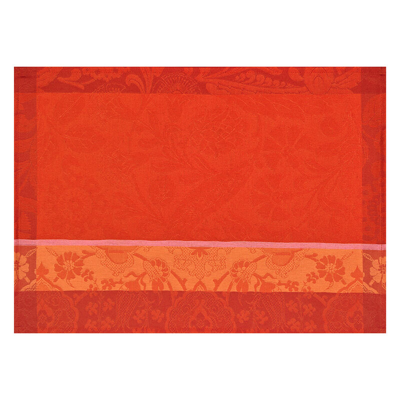 Le Jacquard Francais' Voyage Iconique has an eclectic style and warm, earthy colors that will dress up your table in the colors of summer. The jacquard design consists of subtly embroidered flowers and acanthus leaves. Its border is reminiscent of ceramics with a delicacy close to lace that mimic tiles of Ottoman palaces. 100% long staple combed cotton to guarantee superior quality. Made in France.