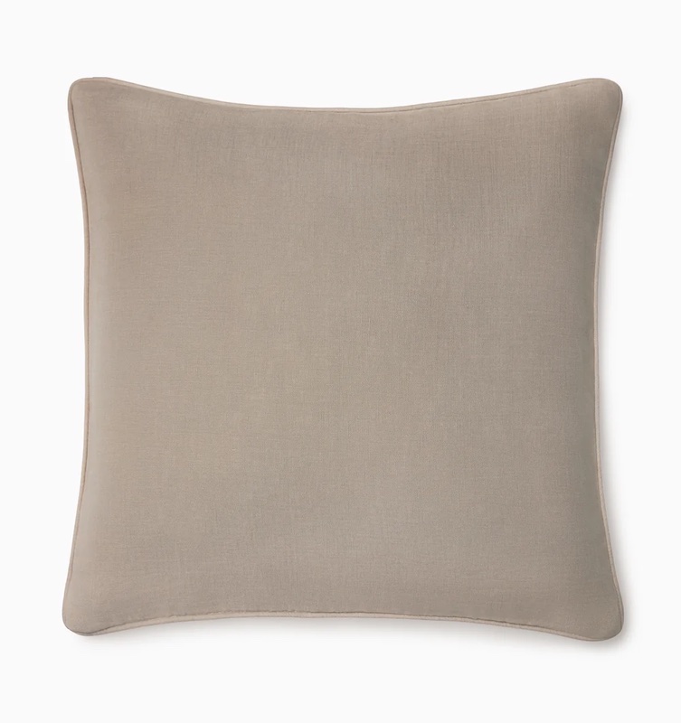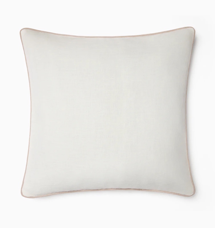 Sferra's Manarola decorative pillow is colorful and fun. Adding a delightful look of spring to your space, Manarola decorative throw pillow displays two stunning colors—one on each side—using our popular Festival linen. Contrast border piping adds a subtle design element. Plain weave. Contrast piped edge. Hidden zipper. Insert is 95% feather and 5% down.