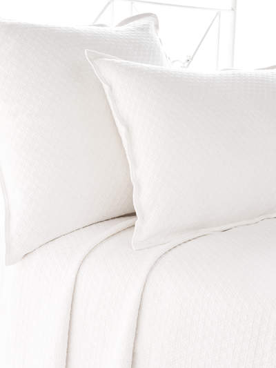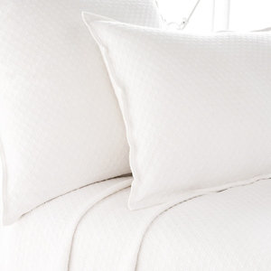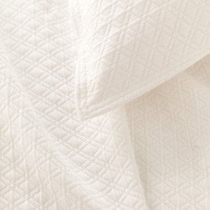100% prewashed lightweight cotton. These easy to wash Coverlet & sham have straight edges. In White, Sand & Ivory along with other great color options. Small diamond pattern throughout.