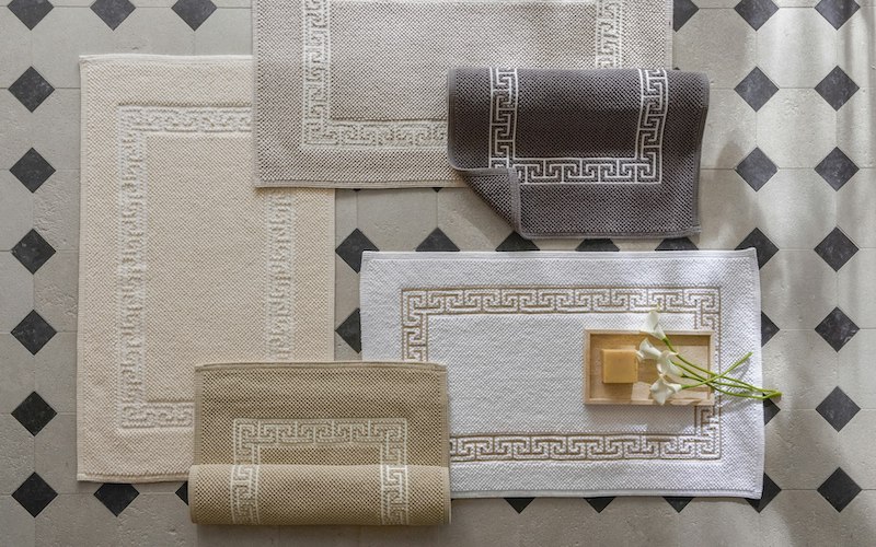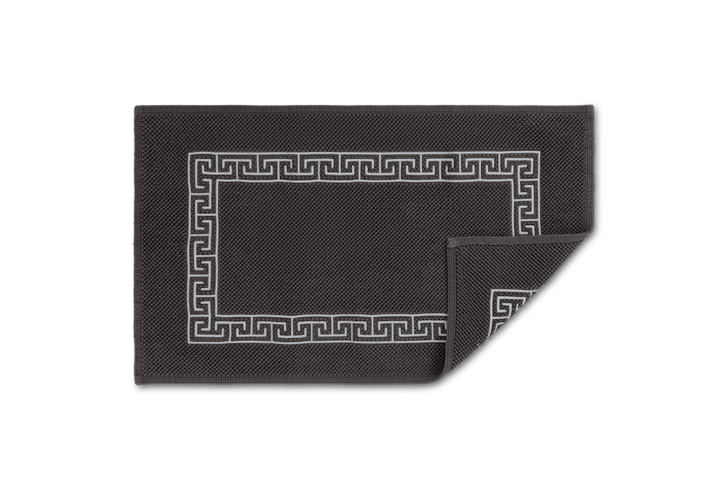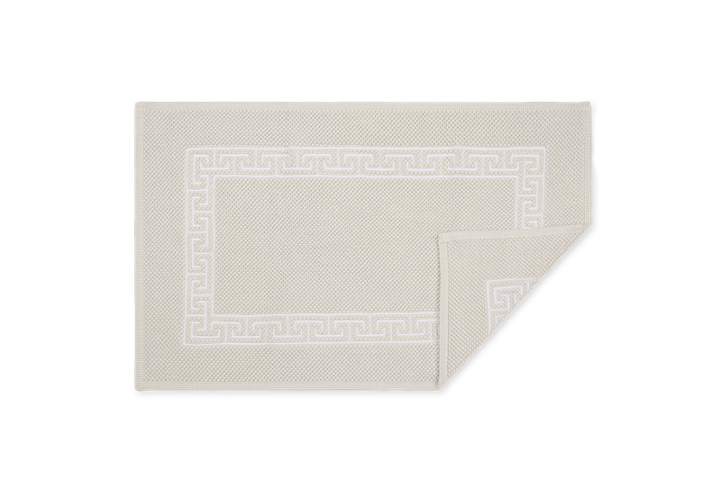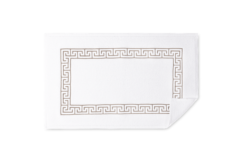 have a geometric frame. The embroidery is stitched onto our ultra-soft, signature Milagro towel. Bath Rugs feature embroidery on the small Reverie Rug.