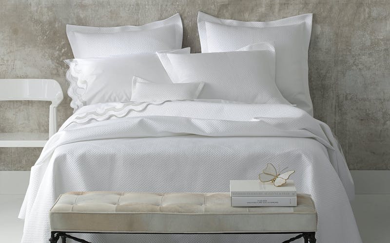 Matouk's Alba is a delicate quilted pattern collection. A small-scale design is quilted on Nocturne sateen 600 thread count Egyptian cotton. The quilts are backed in 300TC sateen. Alba is modern elegance and will give depth to your bed. Filling is made of 100% polyester batting. Available in several colors. Made in the USA of fabric from Italy.