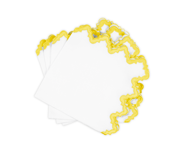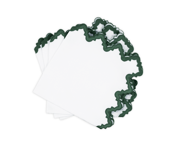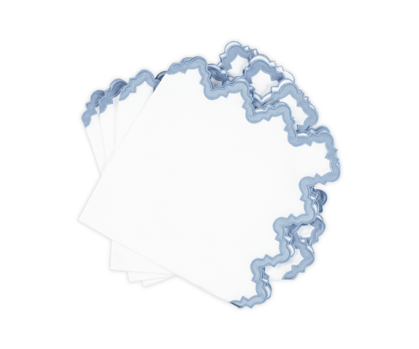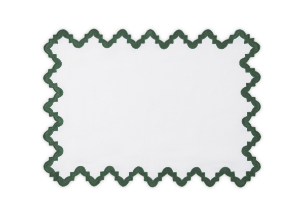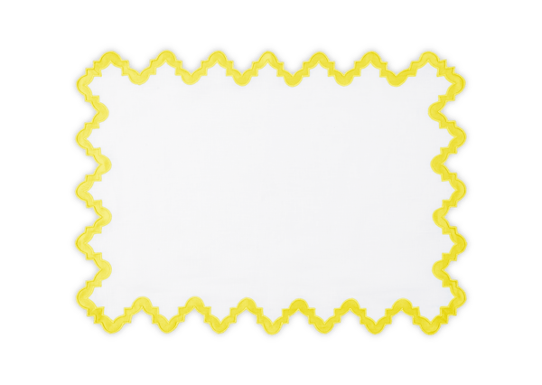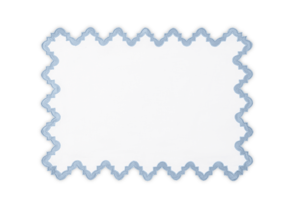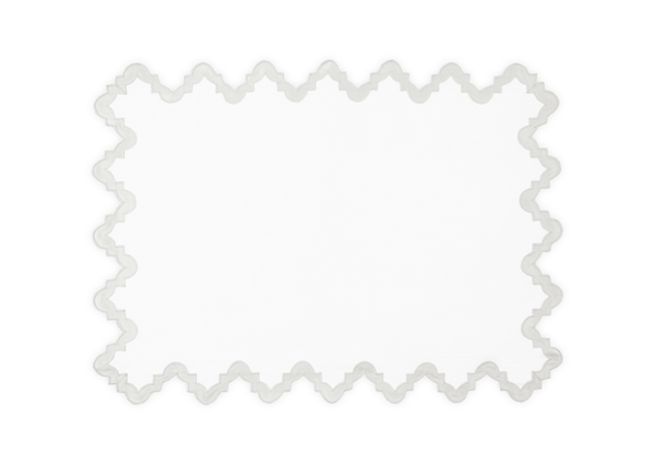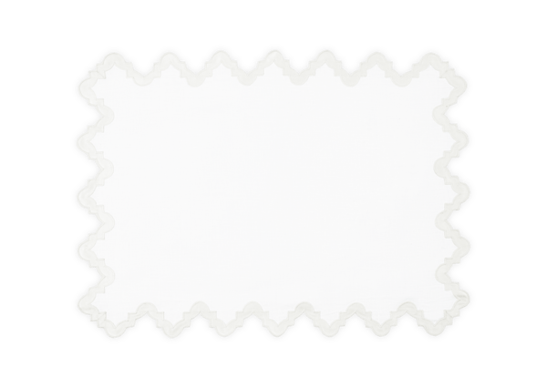Matouk Aziza Table Linens have an intricate applique that is applied to placemats, napkins and tablecloths to create a classic Palm Beach look. Nocturne sateen is applied a white crips white linen to enliven any well set table. Tablecloths require 4-6 weeks lead time. All tablecloths are oversized by 4% for shrinkage. Made in Philippines of fabric from Italy.