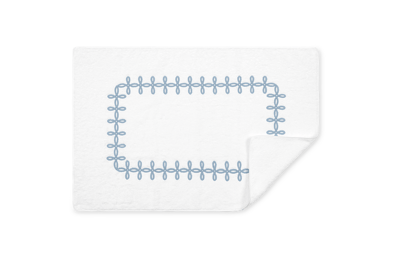 with colored embroidered graceful knots. The look is sweet and elegant. Tub mats are embroidered on one side only.