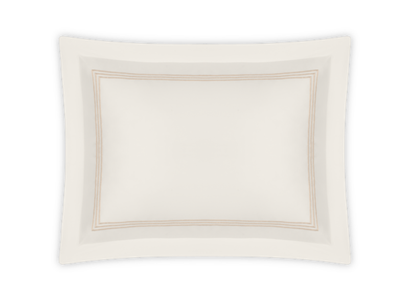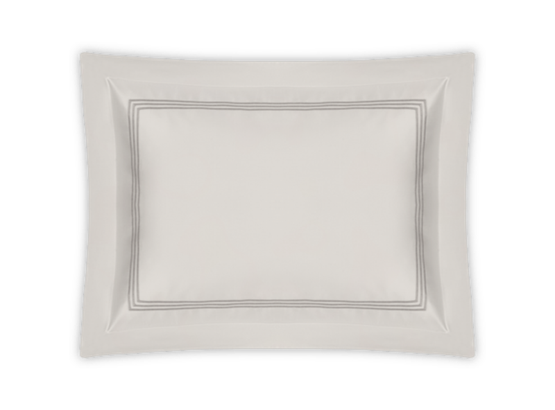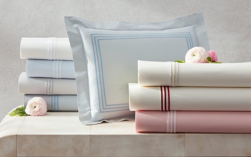 Matouk's Bel Tempo Nocturne brings Matouk's iconic embroidery to their beloved sateen sheeting for the first time. The flat sheet is specially finished with a return embroidery, a detail usually reserved for our bespoke designs. Bel Tempo Nocturne is offered in a diverse palette of muted neutrals and bold contrasts. Nocturne 600 thread count Egyptian cotton sateen. Made in the Philippines of fabric from Italy.