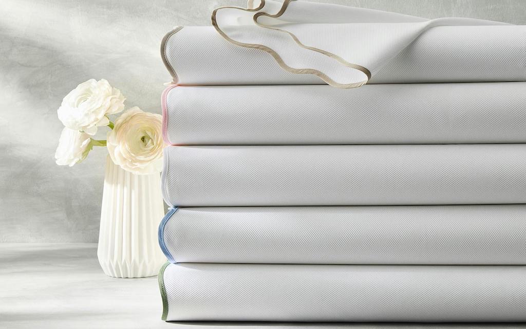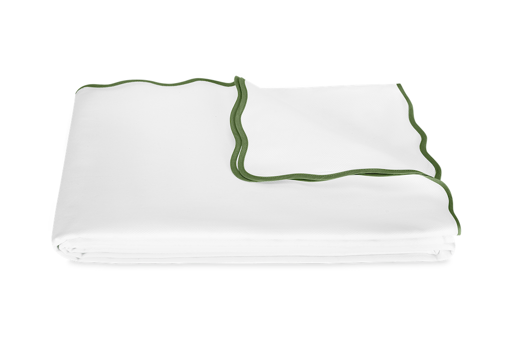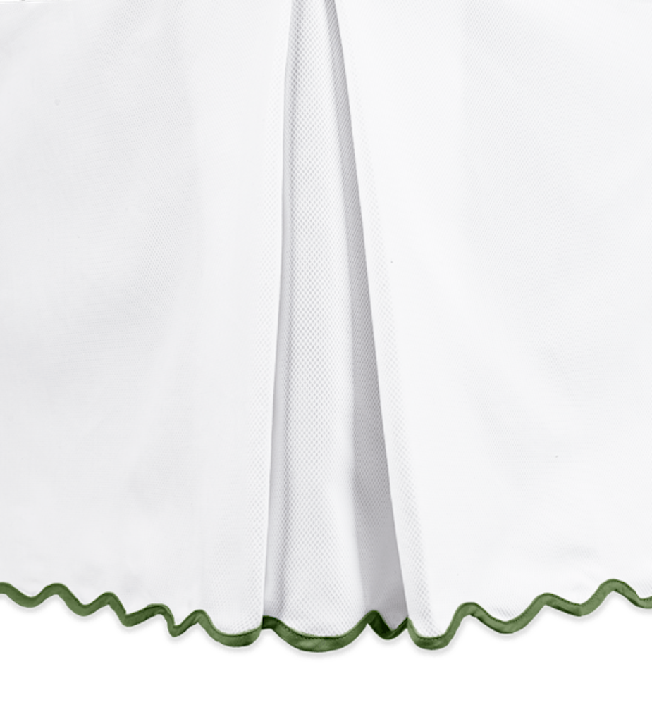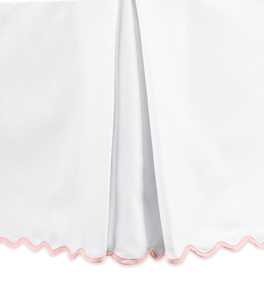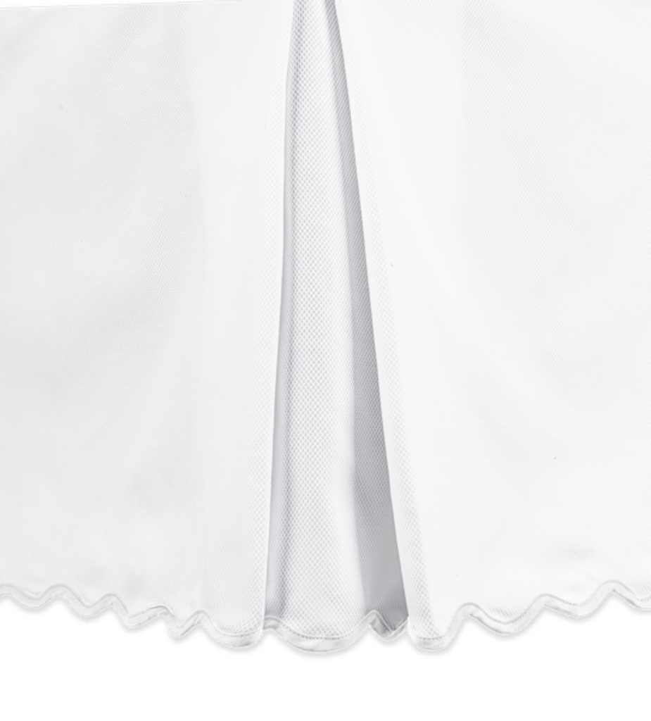 Matouk Camilla Piqué presents a sophisticated take on casual elegance with its finely woven, breathable cotton construction. The subtle triangular texture creates visual interest while maintaining understated refinement, complemented by a graceful scalloped trim. A tailored 1.5" flange frames the duvet cover and coordinating shams with architectural precision. Constructed entirely from premium 100% cotton and manufactured domestically, this collection delivers enduring style backed by meticulous craftsmanship. Note: Bed skirt arrives in one piece with decking panel to be placed between mattress and box spring.