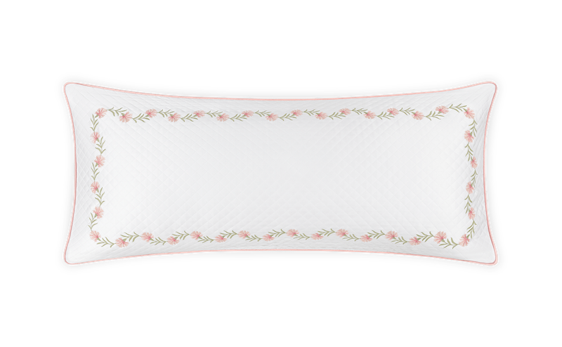 Matouk's Daphne Matelasse Lumbar Pillow Cover has classic a matelasse diamond design. It's simplicity shows a sumptuous elegance that establishes it as a new signature in the Matouk collection. Then a whisper of embroidered flowers and vines are added to bring a sweet and classic look. Corded Edge. 100% cotton Petra matelassé. Inserts sold separately. Made in the Philippines of fabric from Portugal.