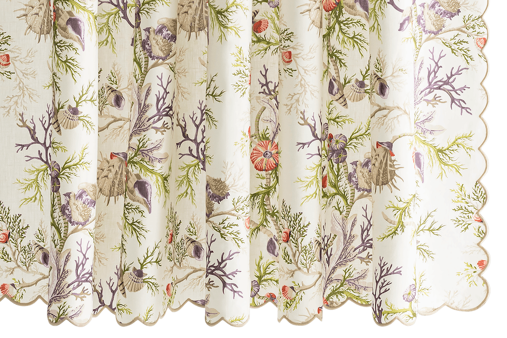 Matouk's Del Tesoro Linen Shower Curtain in Sea Orchid has a Schumacher toile design that is colorful and whimsical. The underwater elegance of Del Tesoro with the maritime creatures is enchanting and beautiful. 100% linen. Made in the USA of fabric from Portugal.