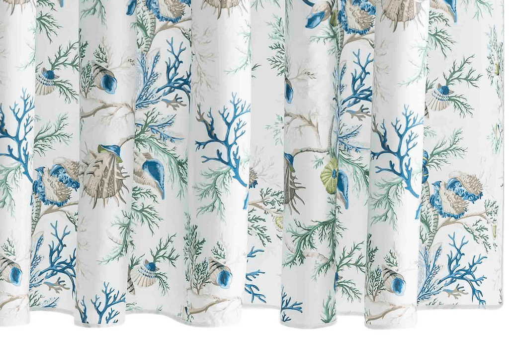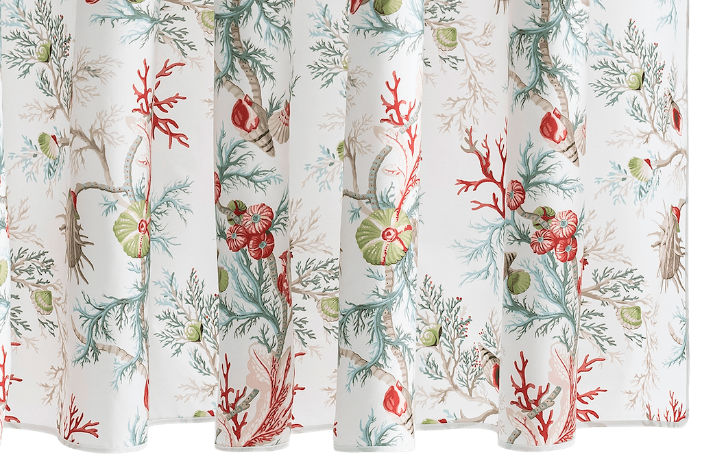 Matouk's Del Tesoro Shower Curtain has a Schumacher toile design that is colorful and whimsical. The underwater elegance of Del Tesoro with the maritime creatures is enchanting and beautiful. Available in two color ways. 100% Egyptian cotton percale woven and printed in Italy. Made in the USA.