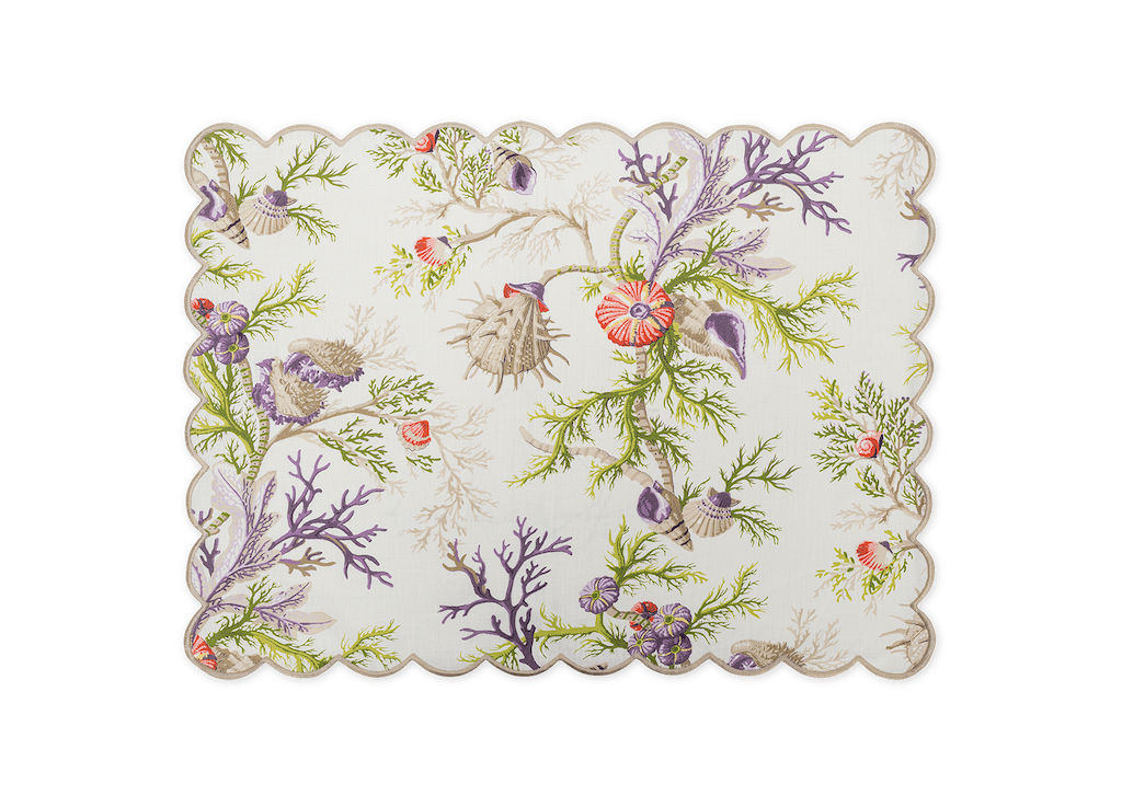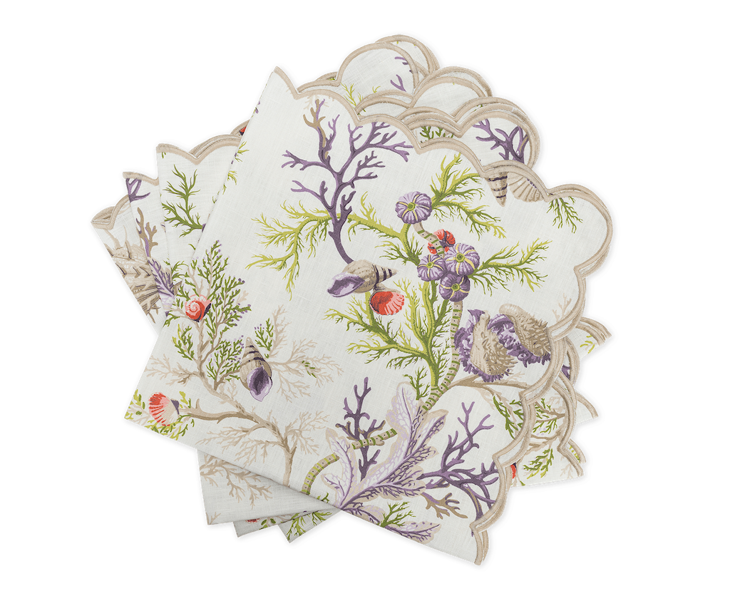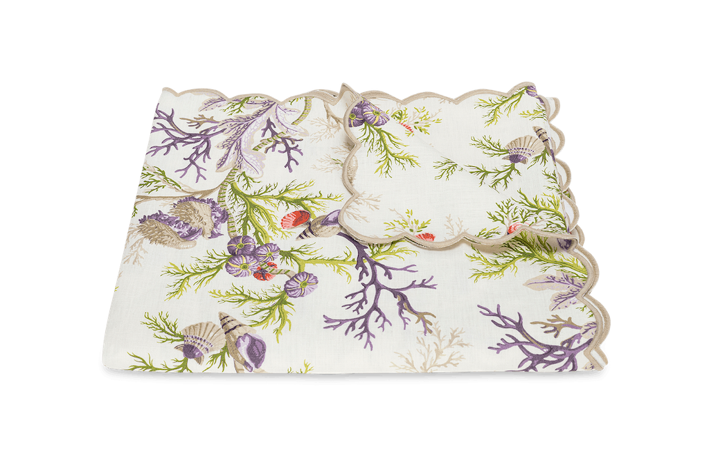 Matouk's Del Tesoro table collection has a Schumacher toile design that is colorful and whimsical. The underwater elegance of Del Tesoro with the maritime creatures is enchanting and beautiful. 100% printed linen. Made in the USA of fabric from Portugal.