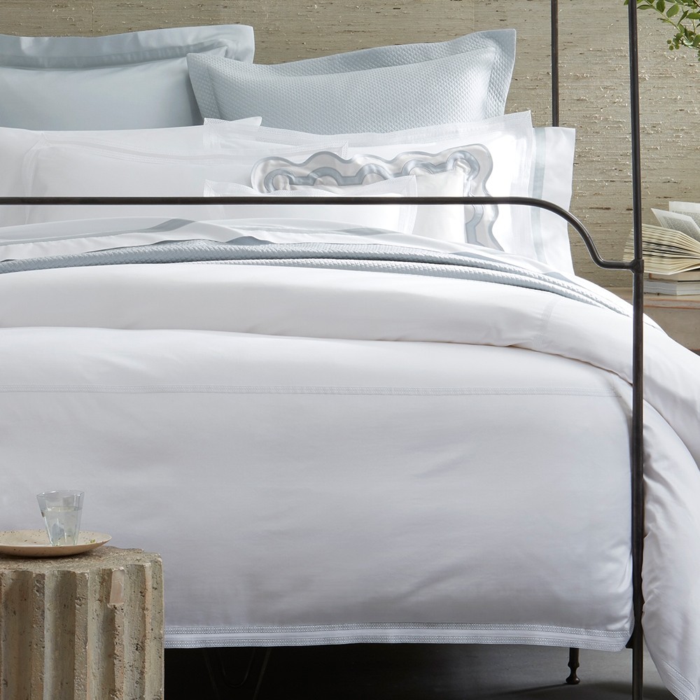 Matouk's Grace is elegant and looks like a handed down Heirloom. Swiss lace surrounds a Giza Egyptian Cotton Sateen. Duvets and Shams finished with lovely 1.5" Flange. Perfectly detailed for the perfect night of luxurious sleep. 615 Thread Count Talita Egyptian Cotton Sateen. Available in white on white.