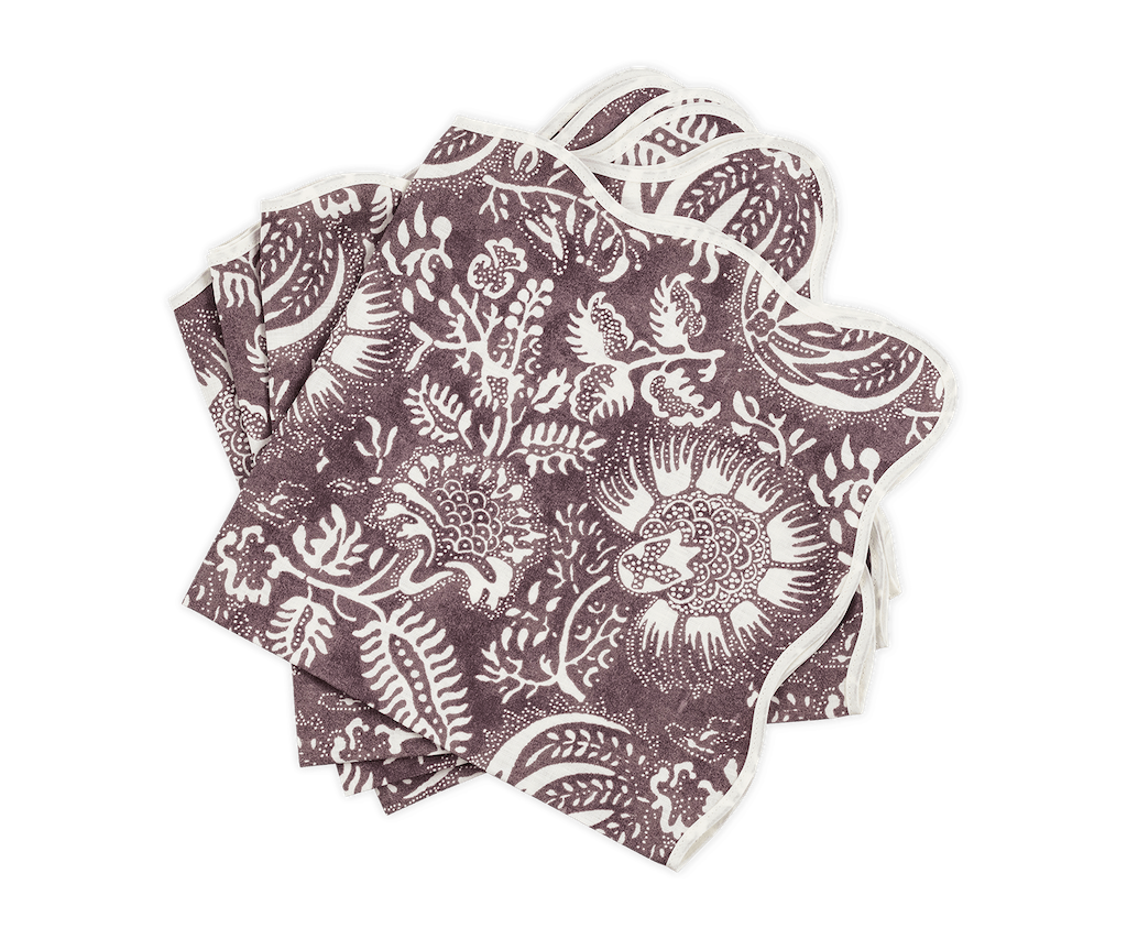 Matouk Granada Table Linens are a Schumacher Botanical featuring abstract pomegranates. Hand-dyed textiles serve as inspiration for this intricate Schumacher collection. Perhaps history's most revered fruit, the pomegranate is believed to represent marriage, birth, prosperity, hope and abundance, adding meaning and merriment to these new table linens; finished with our scallop piped edge. 100% linen. Made in the USA of fabric from Portugal. All of our fabrics are OEKO-TEX Standard 100 certified, meaning they are safe for you and for the planet.