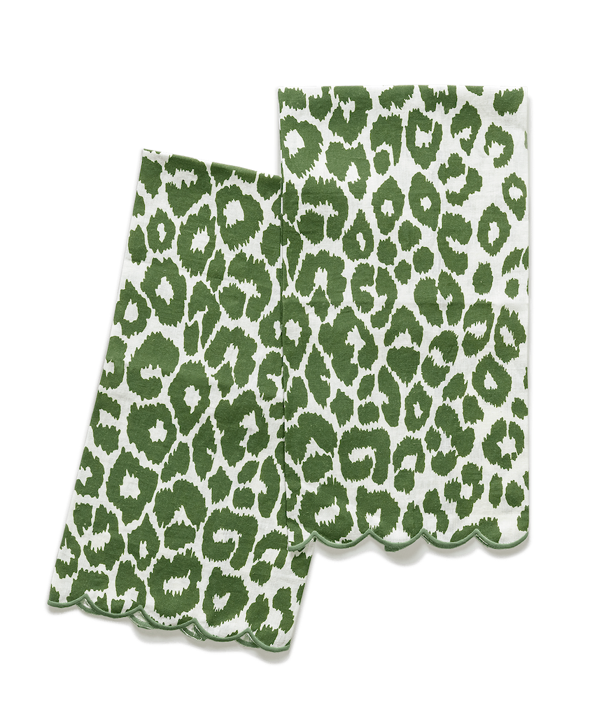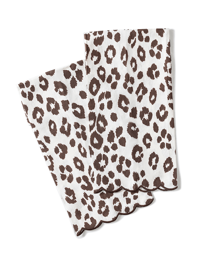 Matouk's Iconic Leopard Guest towels are from the design that Schumacher introduced in the 1970's. Schumacher’s Iconic Leopard is alluring and endlessly chic. It is available in three versatile hues. Set of two. 100% linen. Made in the USA of fabric from Portugal.