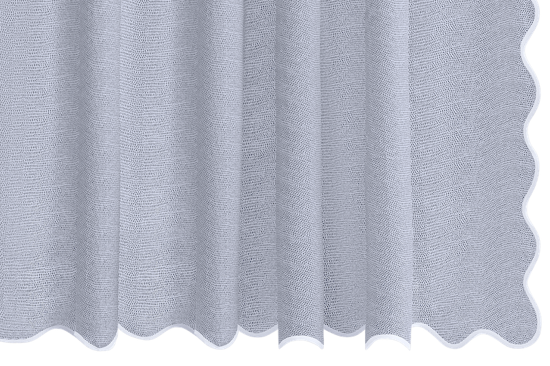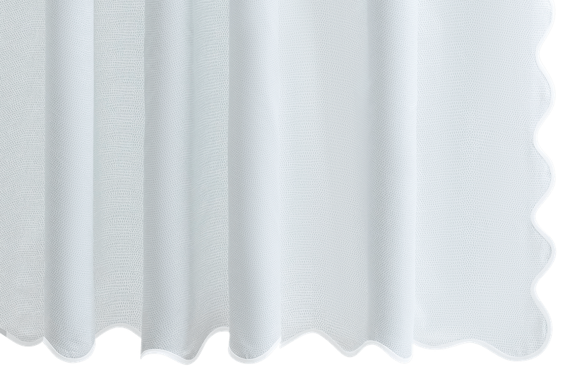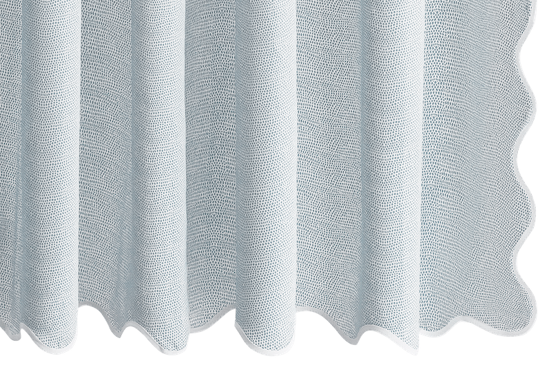 Matouk's Jasper shower curtain features their signature pebbled print on silky sateen. It comes in a wealth of versatile hues, each with a white scallop taped edge, and lends a contemporary feel to the bathroom. Features button holes. 100% cotton sateen. Made in the USA of fabric from Italy.