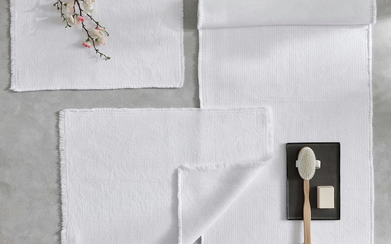 Matouk's Keiko bath rug brings understated elegance to your bathroom with its lightweight woven cotton construction and distinctive textural weave. The short fringe detail adds visual interest, while the non-slip backing keeps it securely in place. Crafted from 100% cotton and made in Portugal. This versatile rug is available in three sizes, perfect for adding comfort and style to any bath space.