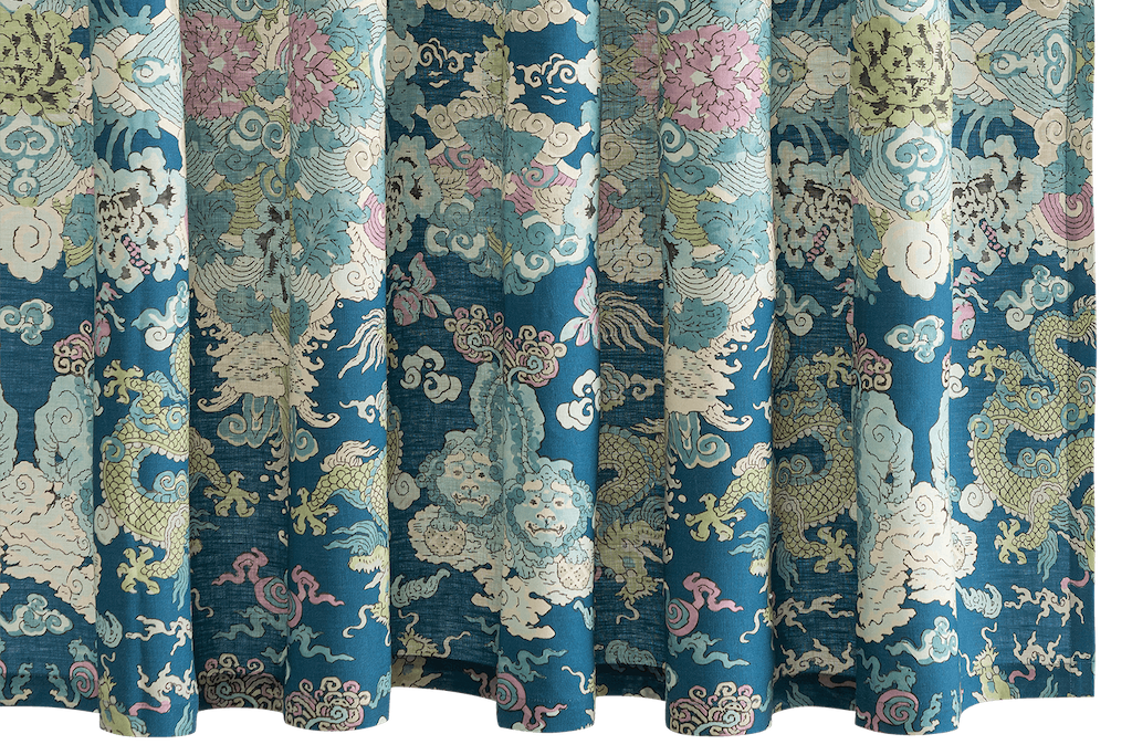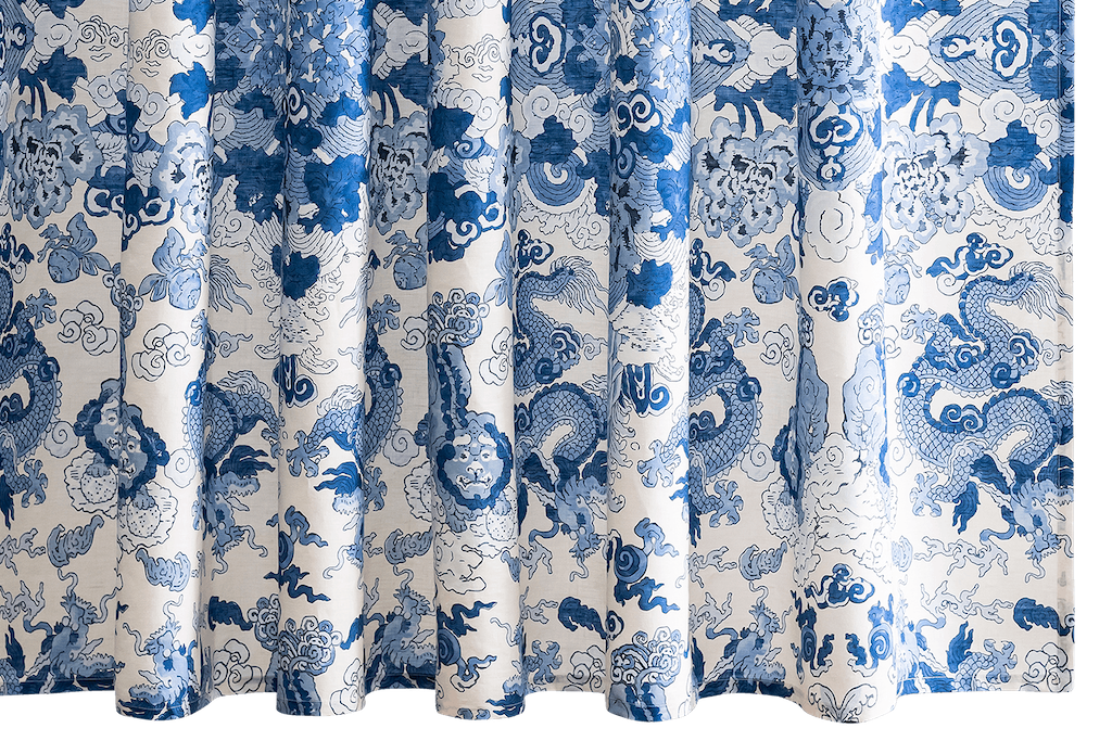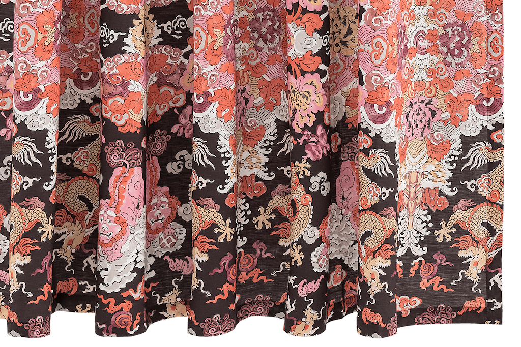 Matouk's Magic Mountain Shower Curtain celebrates the fantastical motifs of ancient myth and legend, Schumacher's Magic Mountain features a psychedelic formation of foo dogs and fire-breathing dragons. 100% linen. Made in the USA of fabric from Portugal.