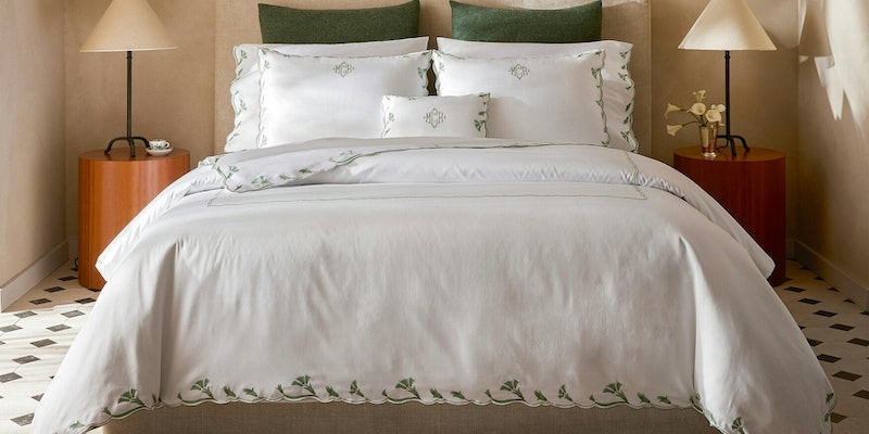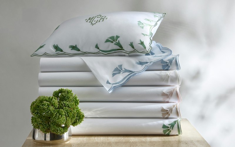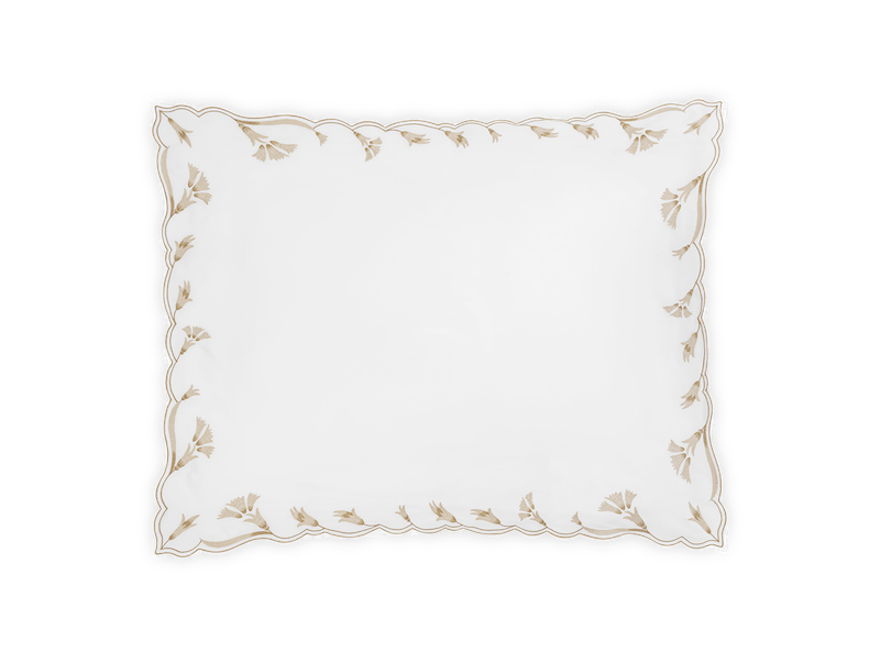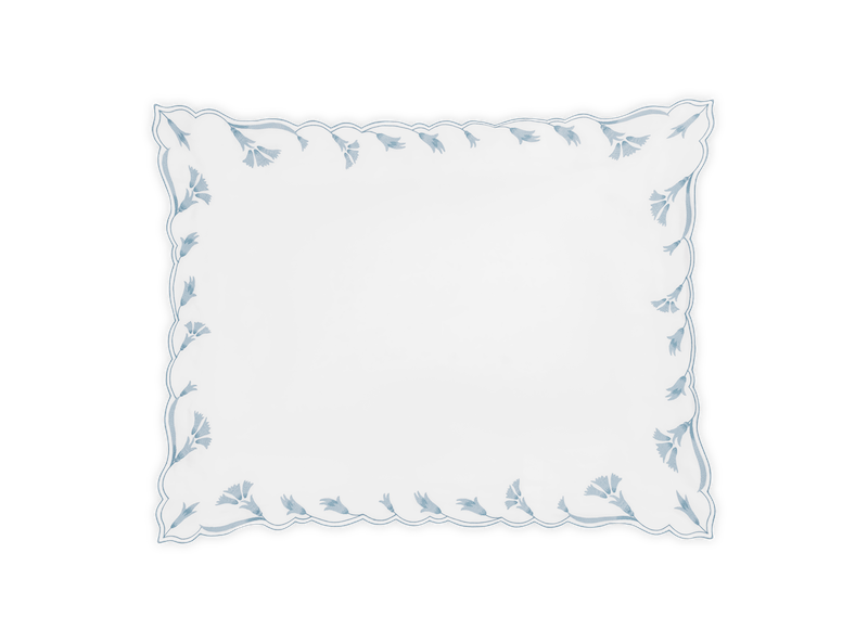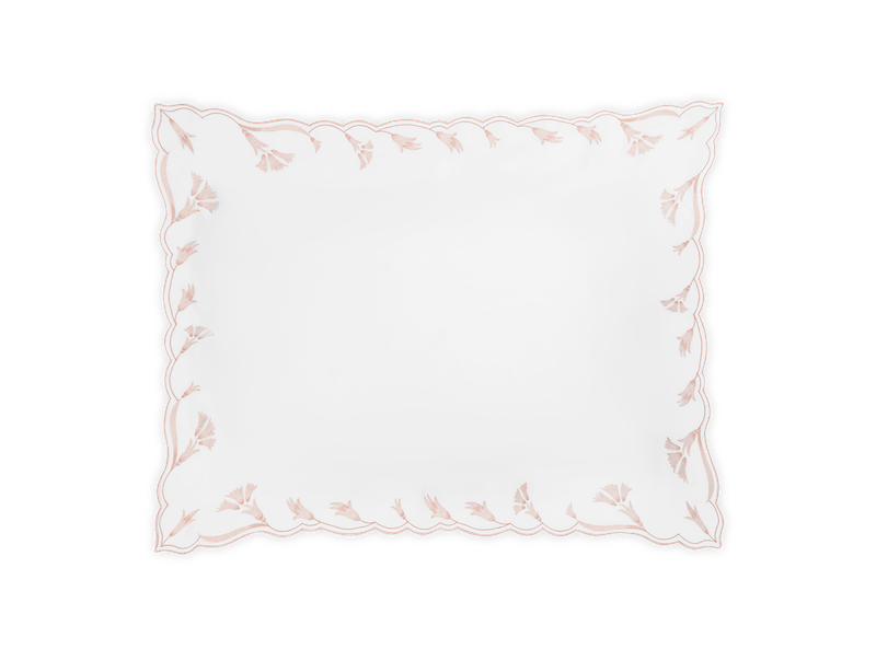 Matouk's Marcella has delicate embroidery on luminous Nocturne sateen that features elongated, scalloped florals whose tonal shifts lend depth and dimension to this classic look. Without any visible stitching, the trim drapes seamlessly—offering a sense of softness and sophistication to the bed. Flats sheets have 30" embroidery return. Fitted sheets and Nocturne sheeting. Nocturne 600 thread count Egyptian cotton sateen. Made in the Philippines of fabric from Italy.