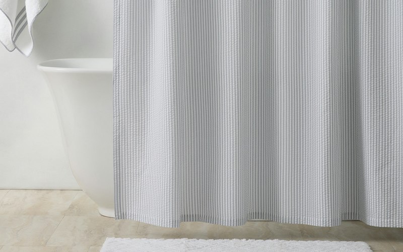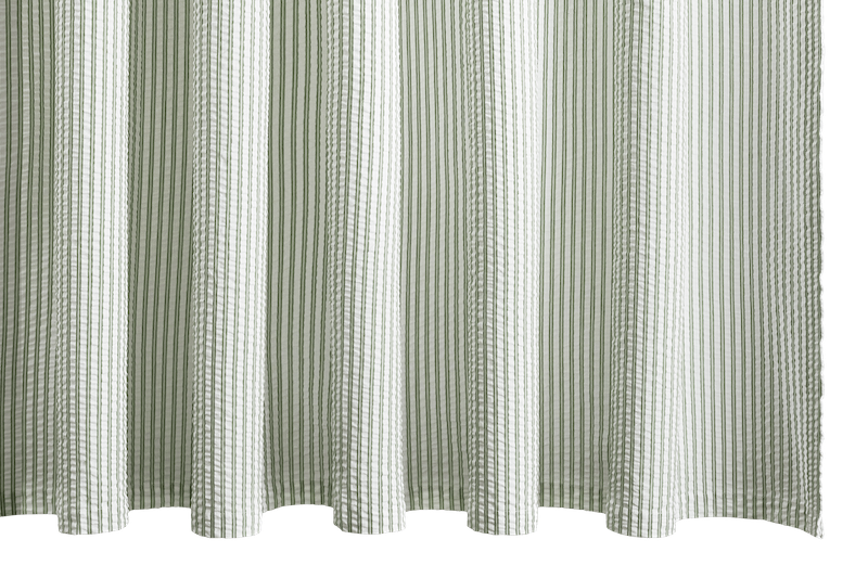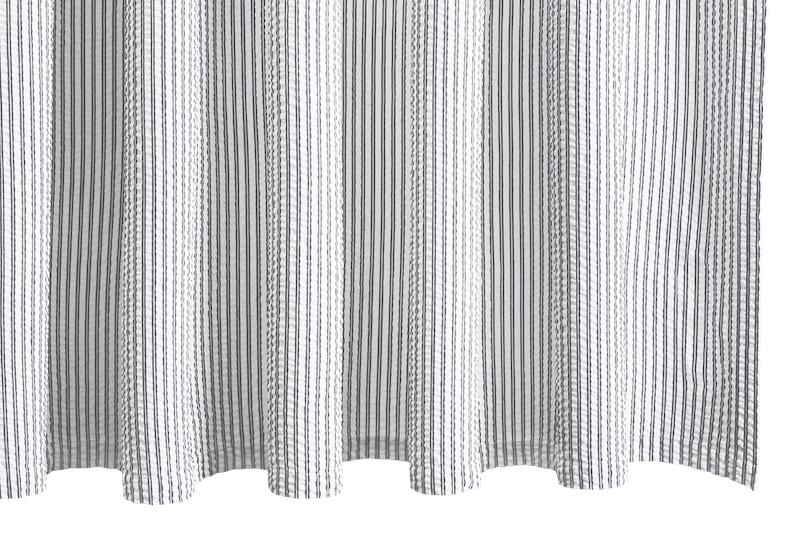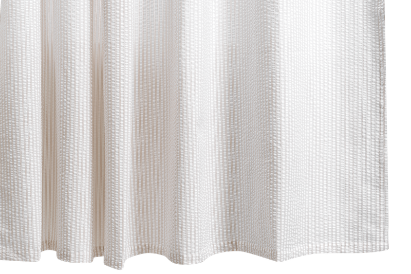 Matouk's Matteo Shower Curtain provides a sophisticated option that evoke elegant menswear fabrics. It is a seersucker with a neutral, two-toned stripe. You'll love its dapper look. 100% cotton. Made in the USA.