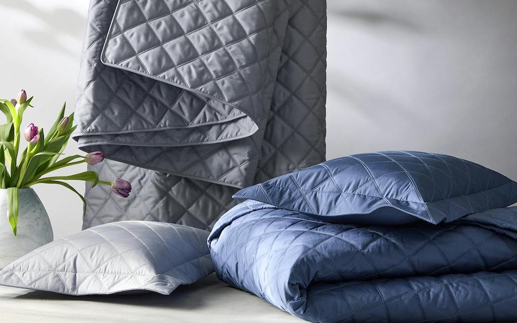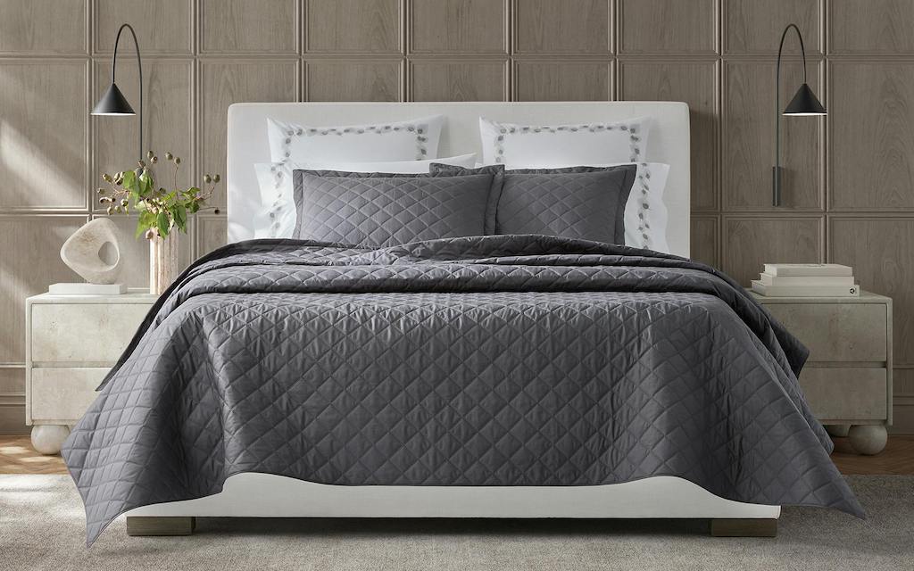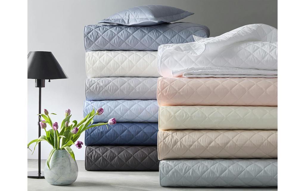 Matouk Milano Quilt is made from the 600 thread count Milano percale. This diamond quilt features an elegant double stitch detail for an elevated look and feel. Shams have a 1.5" flange. Egyptian cotton percale. Made in the USA of fabric from Italy.