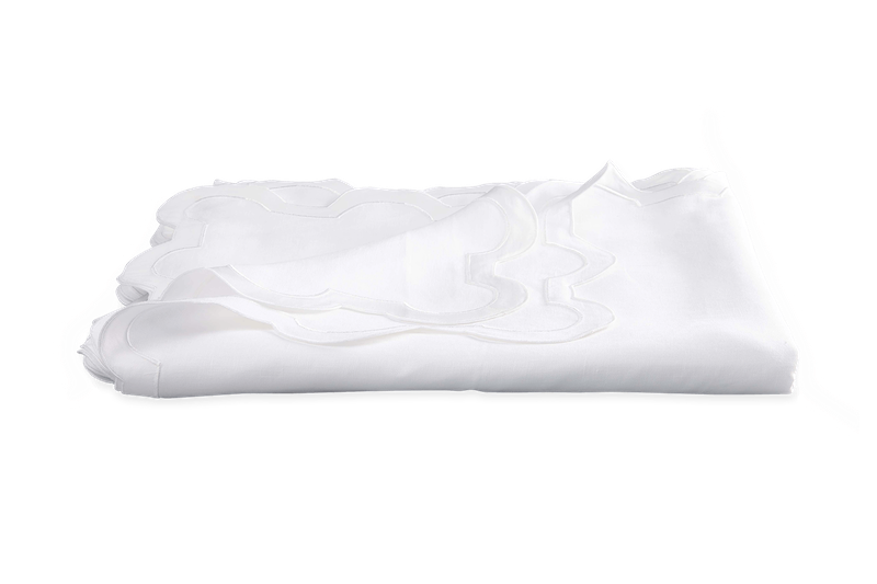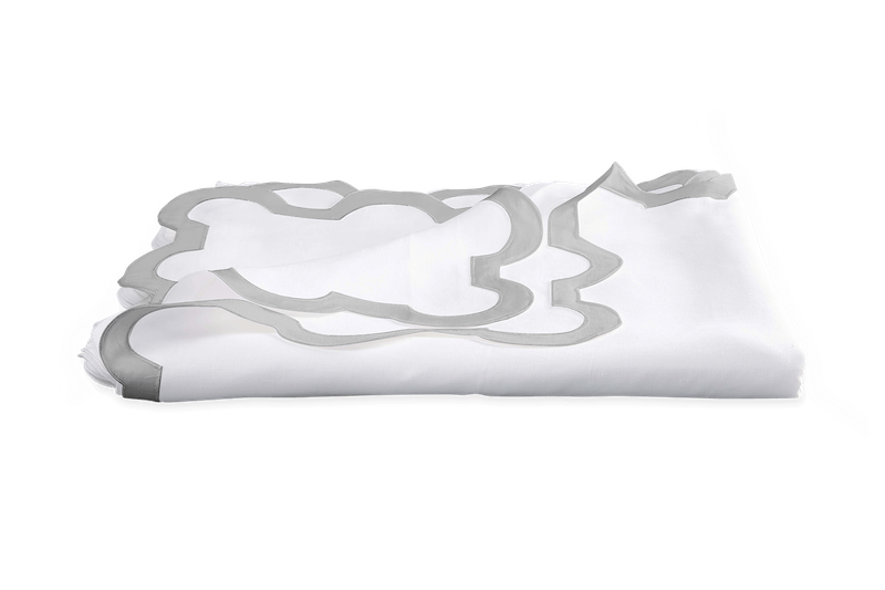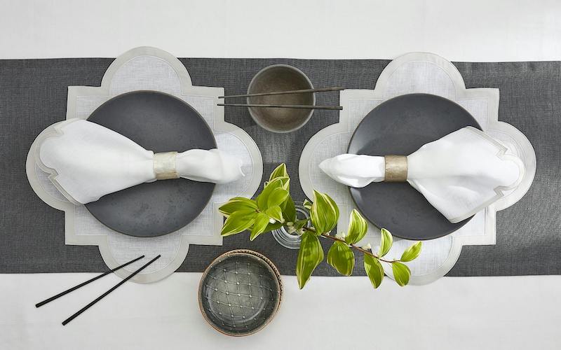 Matouk's Mirasol Neutral Table Linens were inspired by a stroll on Worth Avenue in Palm Beach, the unique arch trim of shop awnings becomes a tasteful complement to exquisite table linen. Available in several colors. We love mixing and matching the colors.