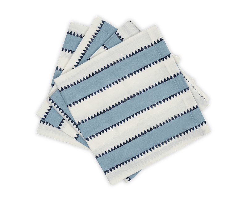 Matouk's Apollo Stripe was inspired by antique textiles. This Schumacher pattern is a bold and expressive choice for the table. Made in their signature linen, Apollo Stripe features a simple hem for a collection infused with a laid-back, Mediterranean ease. 100% linen. Made in the USA of fabric from Portugal.