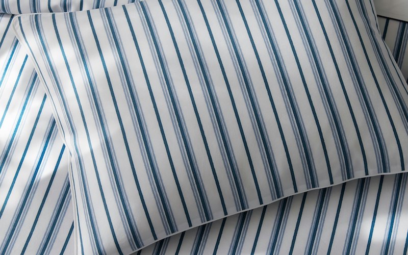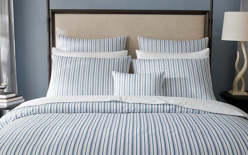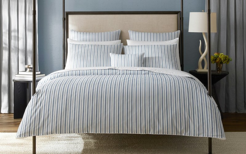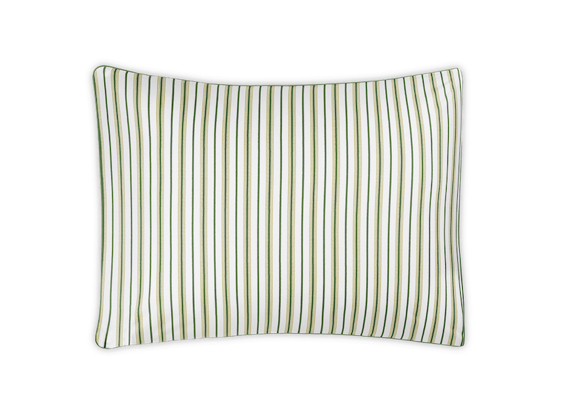 Matouk's Calypso is a Schumacher stripe patterned collection that features alternating pinstripes for versatile and effortless layering. 500 thread count Egyptian cotton percale woven and printed in Italy.