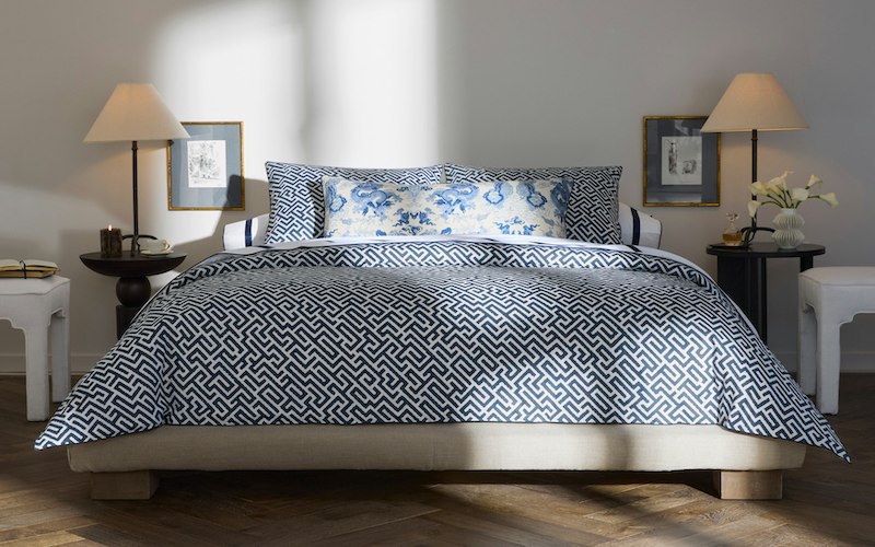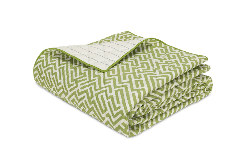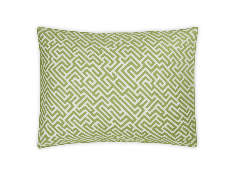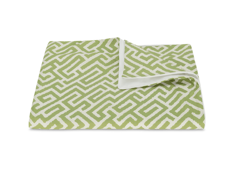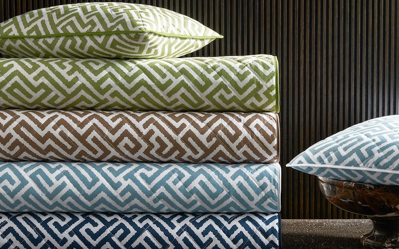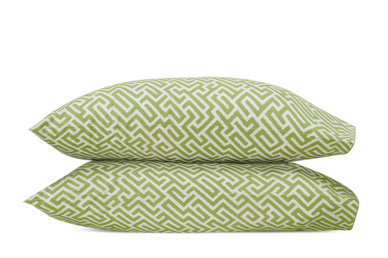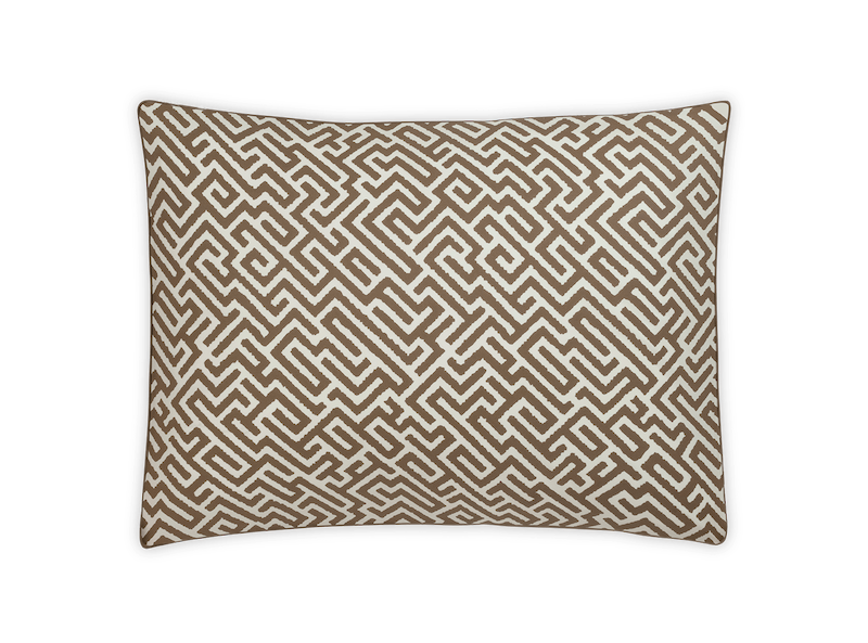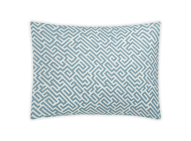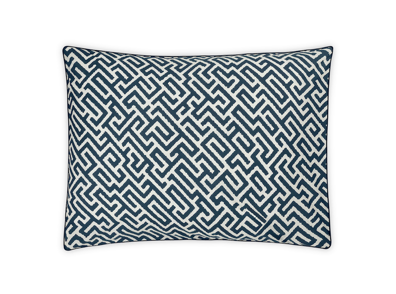 Matouk's Gabriel is a Schumacher print featuring a striking geometric motif and complementary corded edge. Reminiscent of a finely woven tapestry, its design introduces dynamic movement and dimension to the bed—boldly graphic yet elegantly refined. Gabriel will give dimension to any bed. Duvet covers have Luca White 500tc sheeting on the reverse. Quilts have Amalfi sheeting on the reverse in coordinating color, a 3" diamond pattern, and piped edges. Luca 500 thread count Egyptian cotton percale. Made in the USA of fabric from Italy.