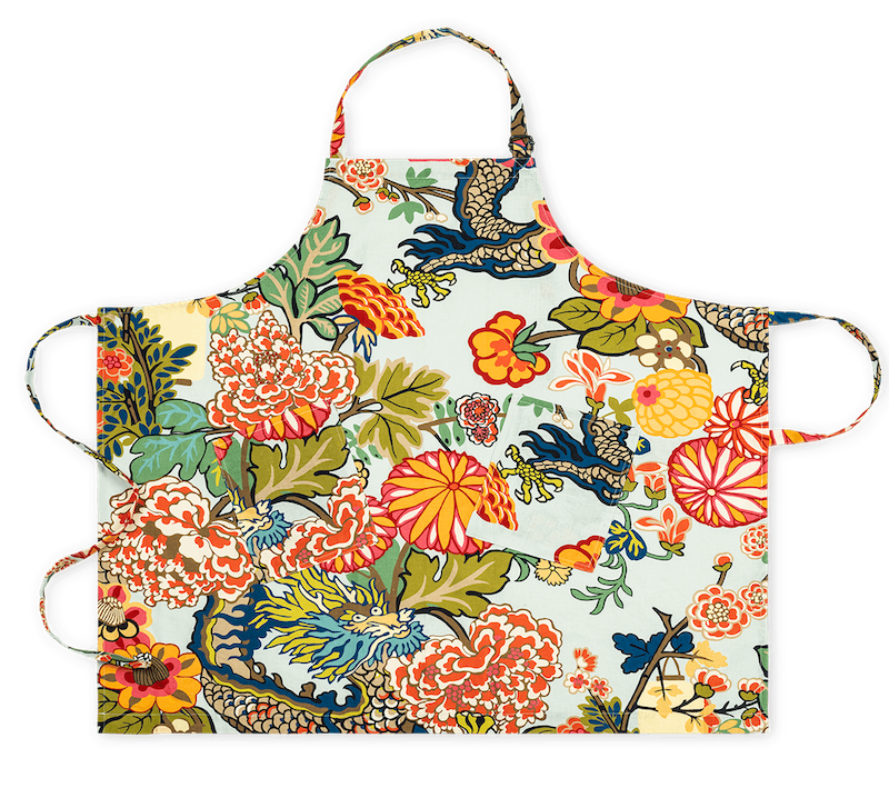 Matouk's Linen Apron Chiang Mai Dragon Aquamarine will add charm and style to your kitchen. It features an adjustable strap and drawstrings for a perfect fit. Their apron collection is made in Portugal and features four charming Schumacher prints. One of Schumacher's all-time iconic designs, Chiang Mai Dragon is colorful, exotic and full of enchantment. 100% linen. Made in Portugal.