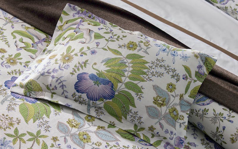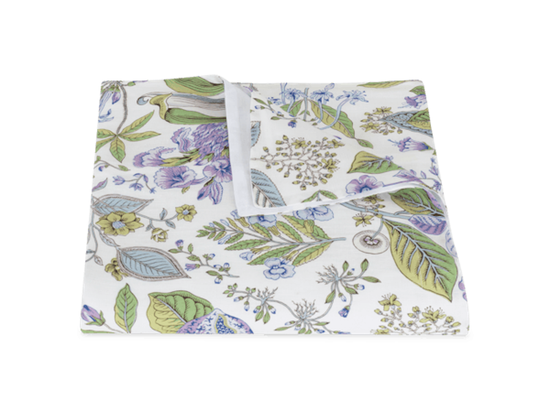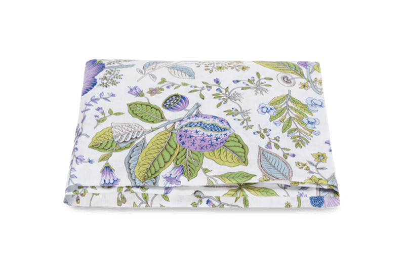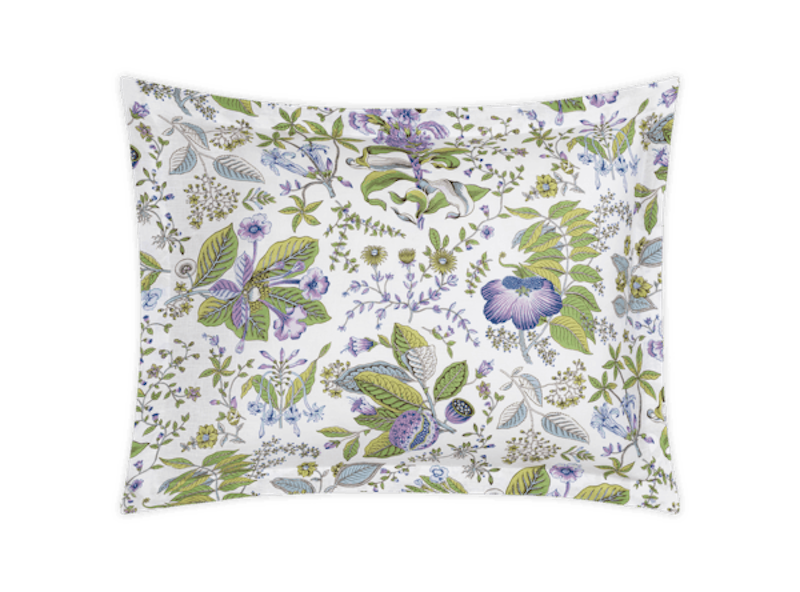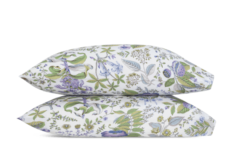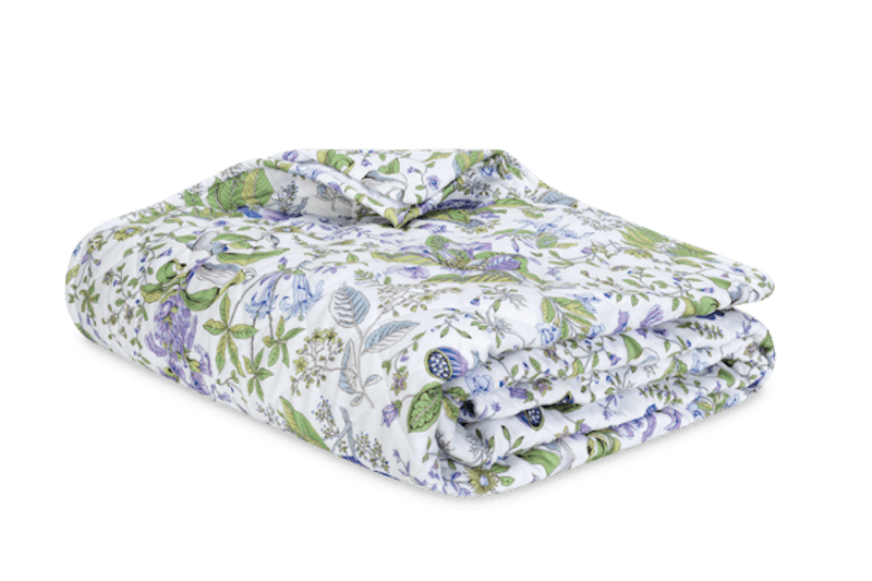 Matouk's Pomegranate Linen Collection is so fresh and springy. I fell in love with it at first glance. The design is an 18th century botanical from Schumacher's archive. It is printed on Matouk's super soft Roman linen. Duvet Covers and quilts have Roman white linen on the reverse. Quilts have a 4" diamond pattern and are filled with 100% polyester batting, 100 gm per square. 100% linen. Made in the USA of fabric from Italy.
